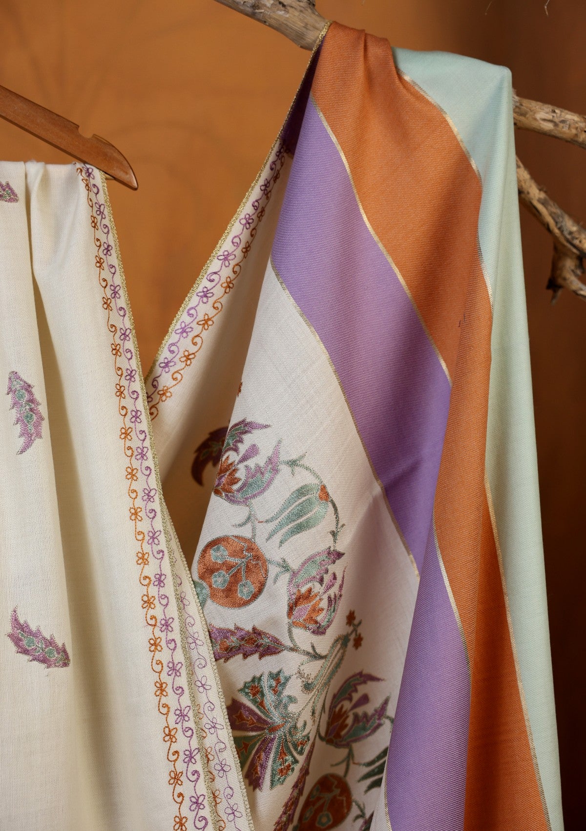 Pashmina Ari Work Shawl D#05 - Off White 2