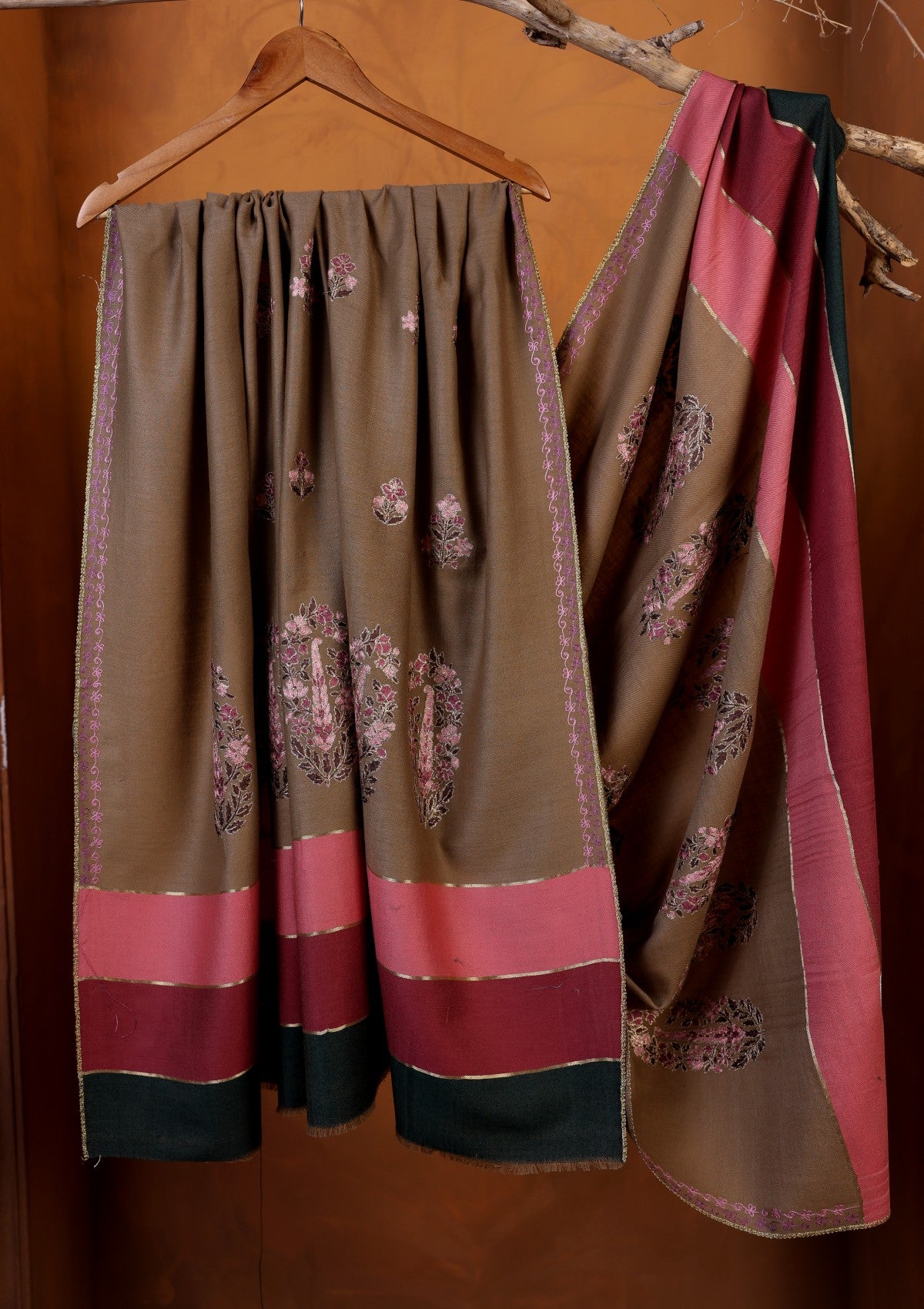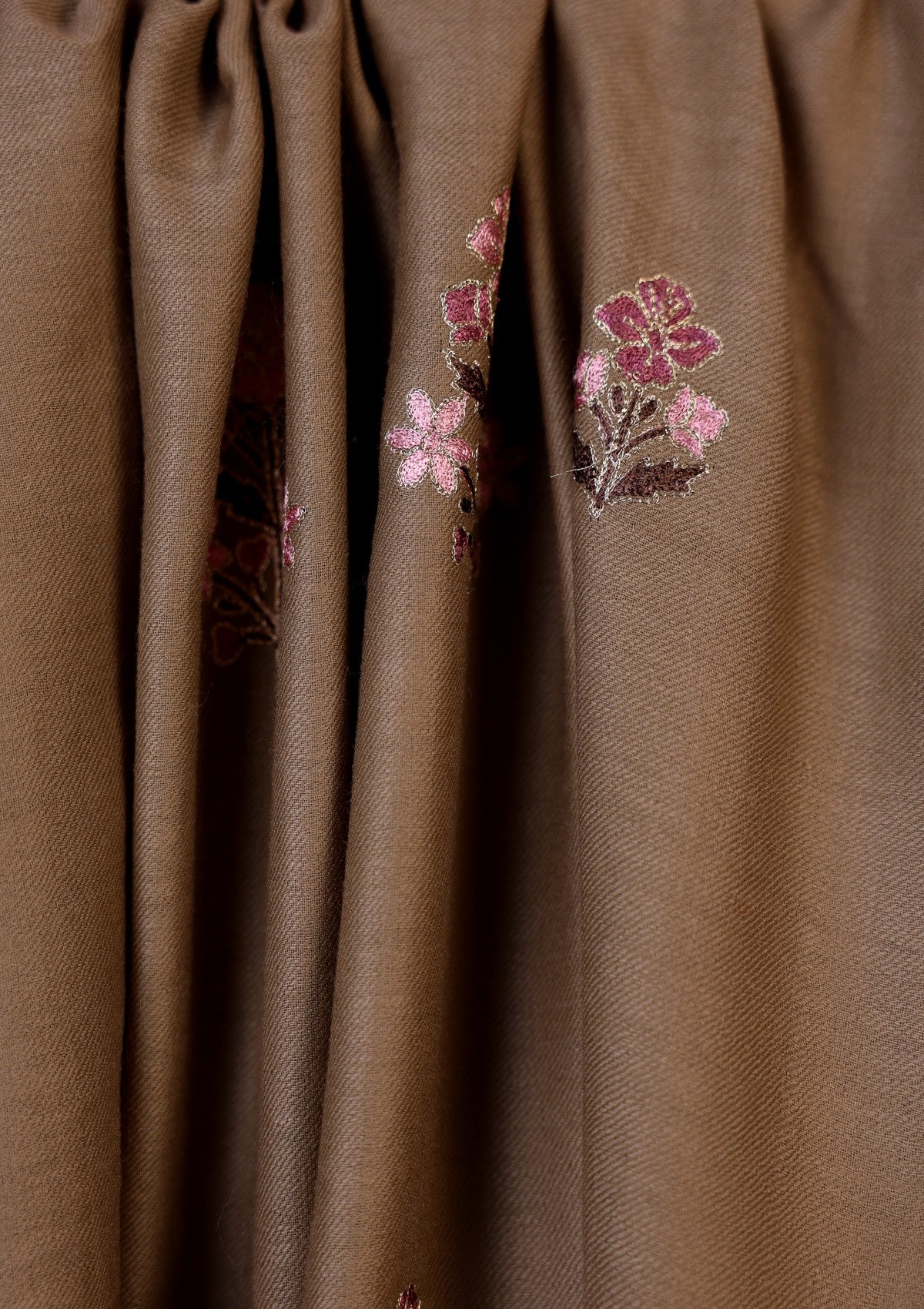 Pashmina Ari Work Shawl D#07 - Brown 1