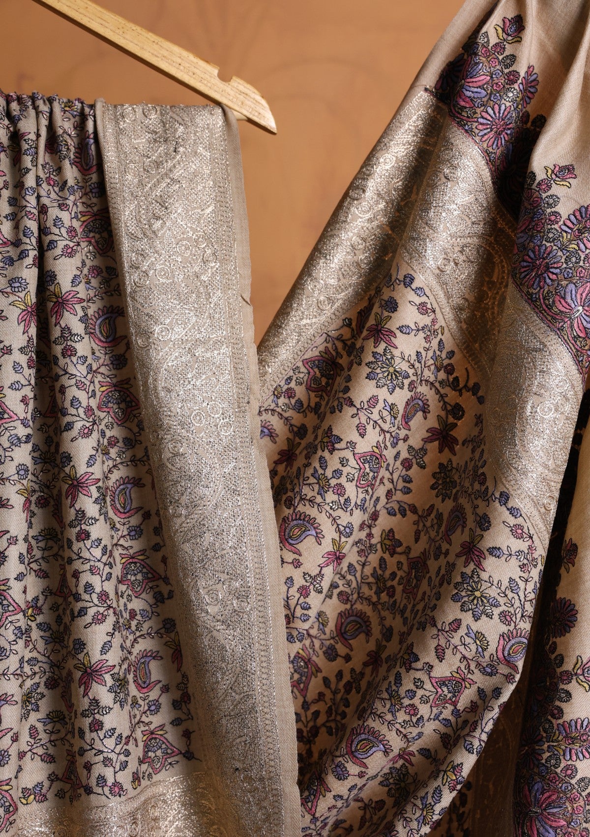Pashmina Embroidered Jaaldar Shawl D#11 - Skin 5