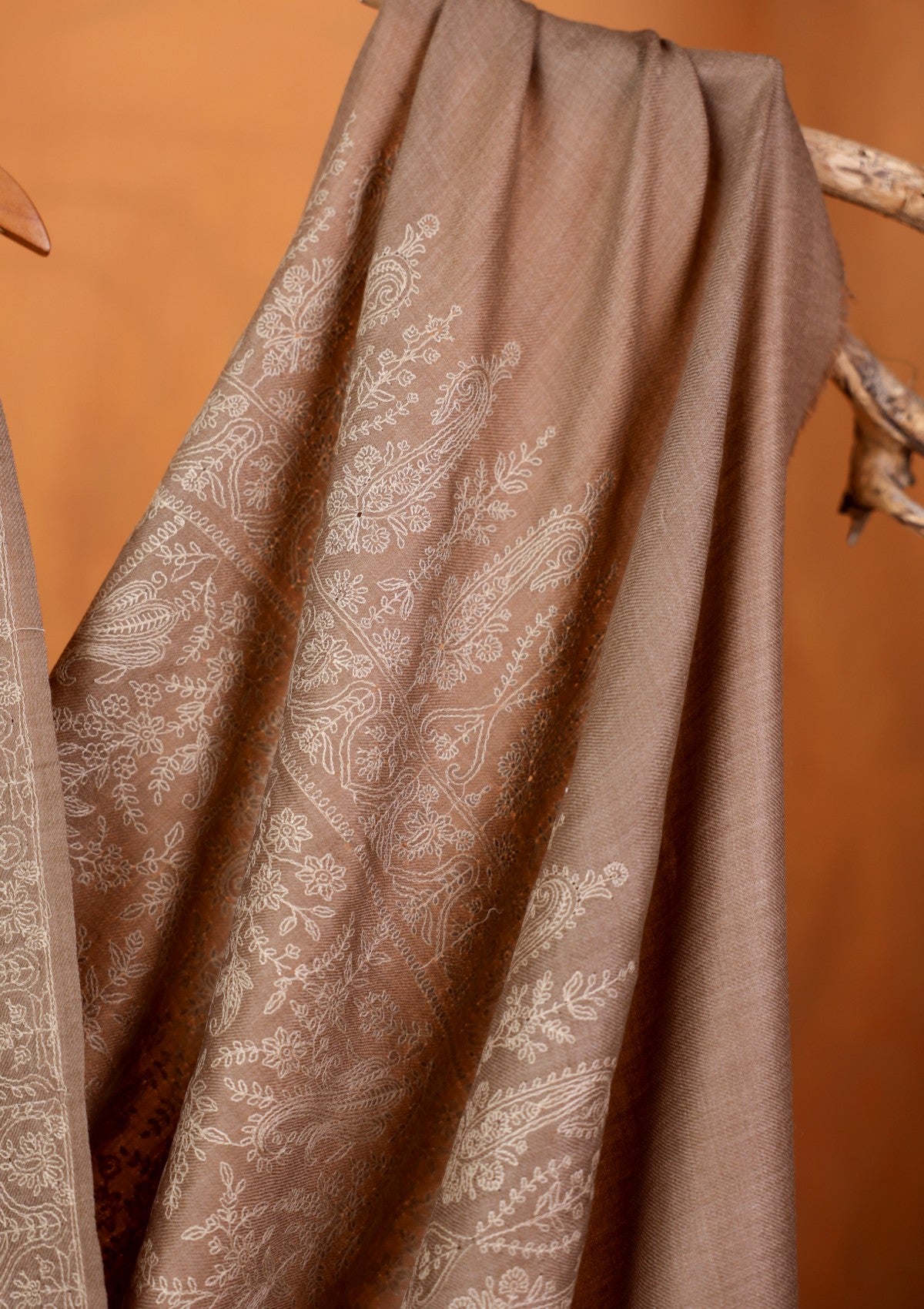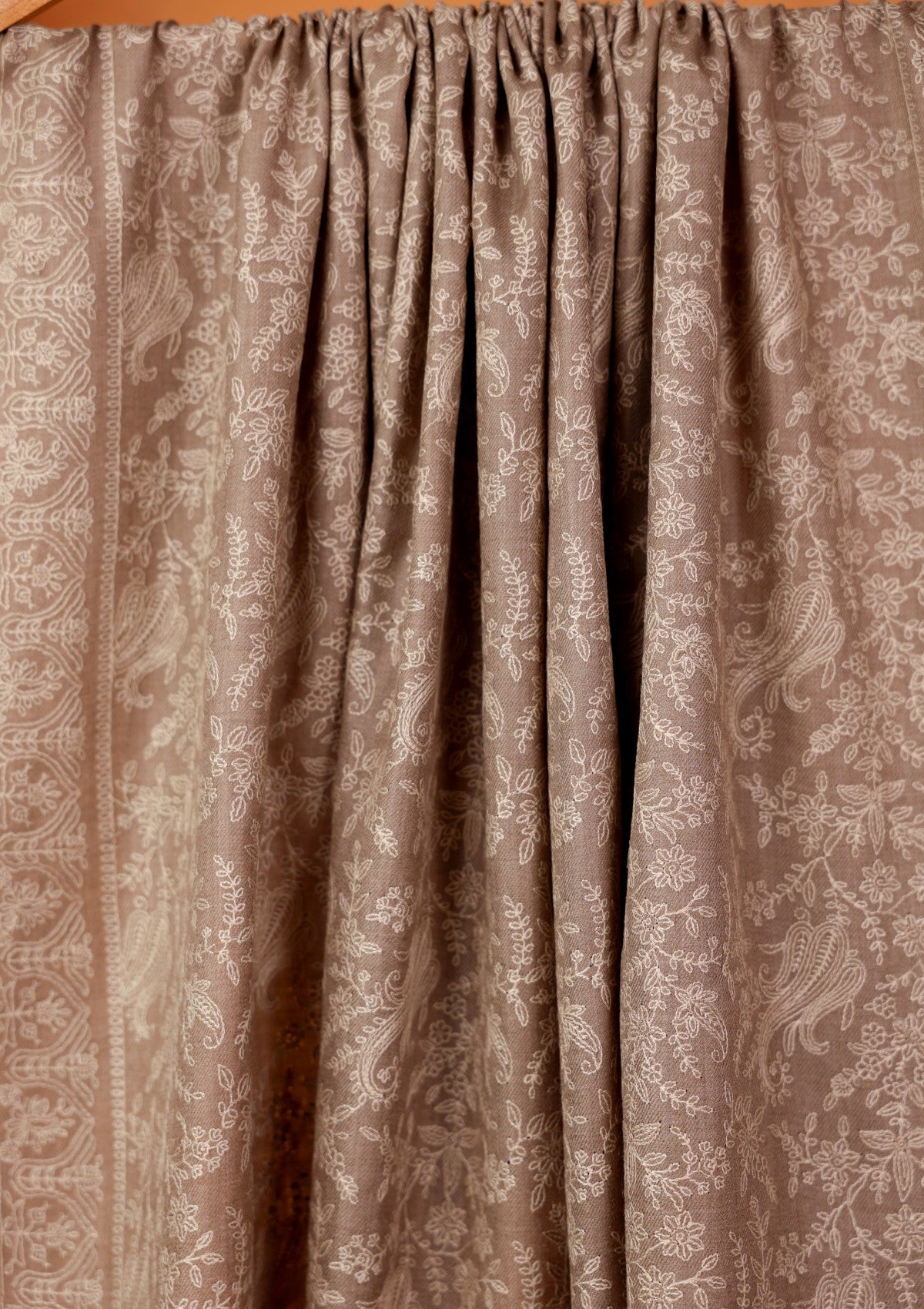 Pashmina Embroidered Jaaldar Shawl D#12 - M Grey