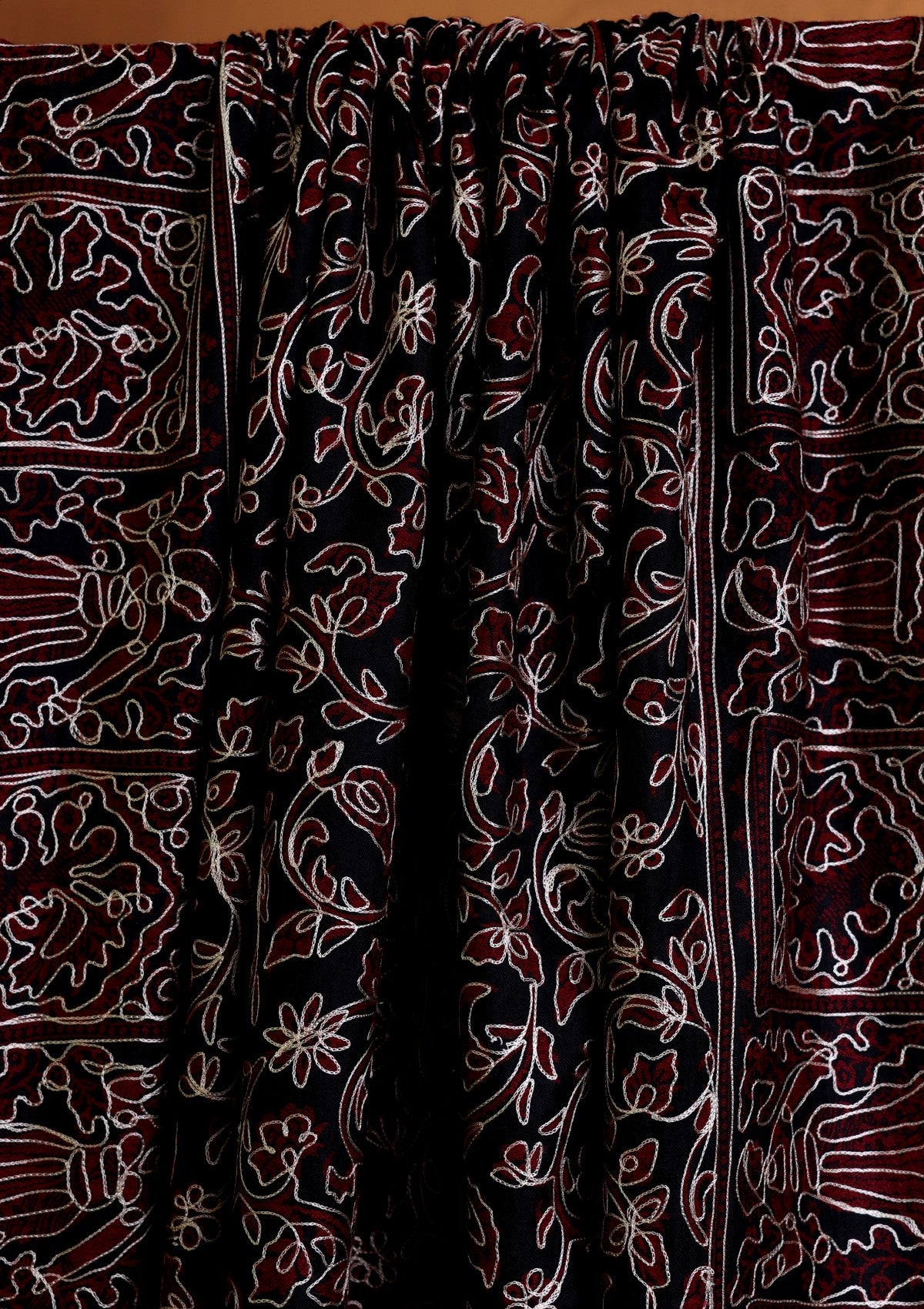 Pashmina Jamawar Ari Work Shawl D#01 - R Black