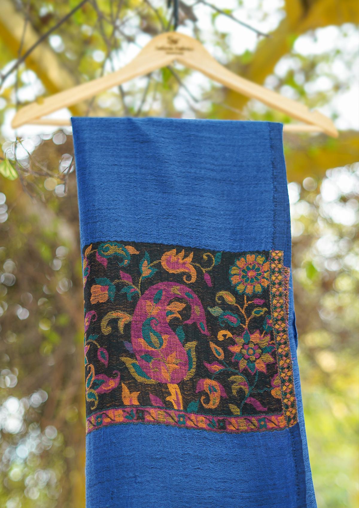 Pashmina Kaani Jamawar Shawl D - 77 - Ink Blue