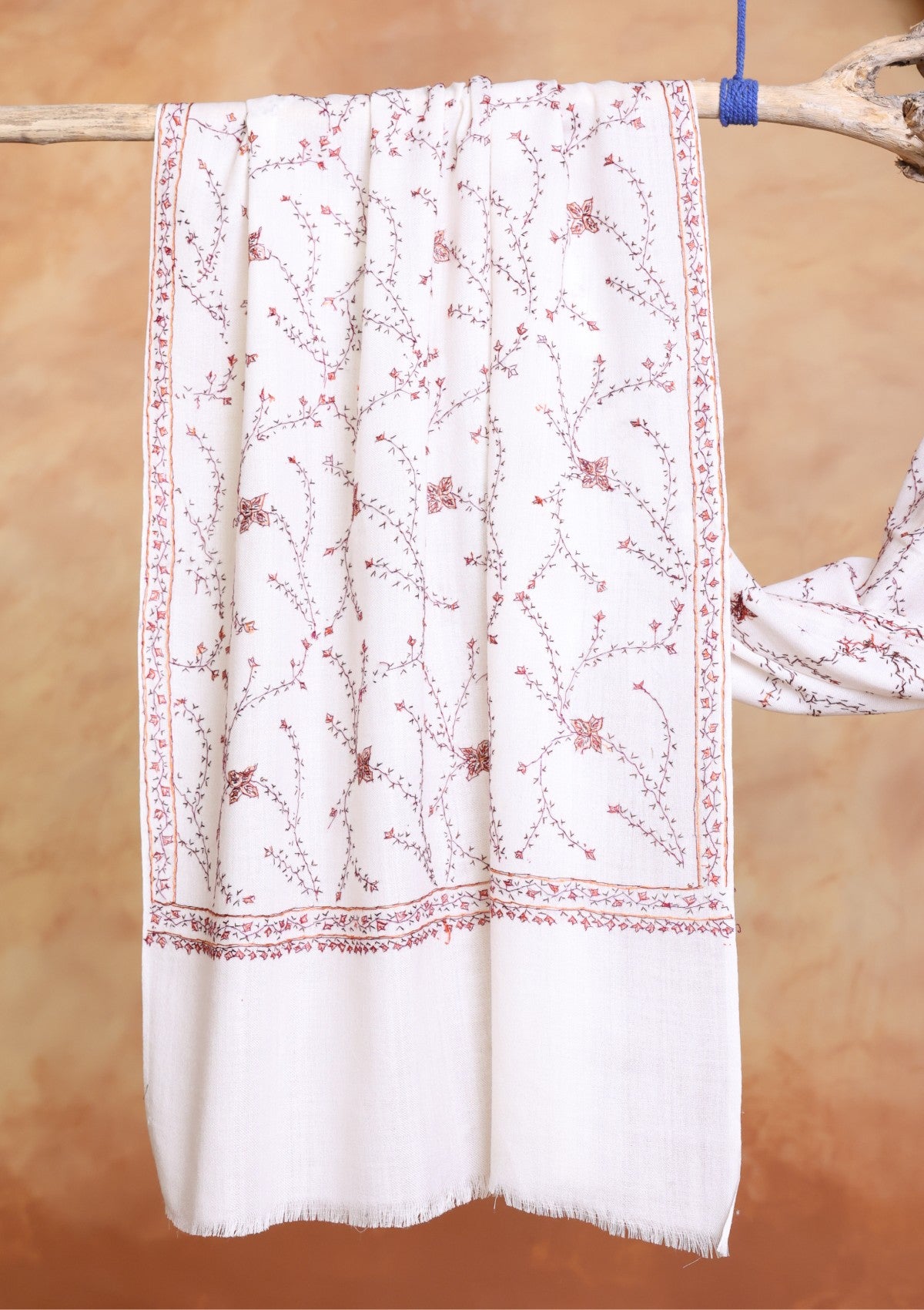 Pashmina Kashmiri Jaaldar Scarf D#37 - Off White