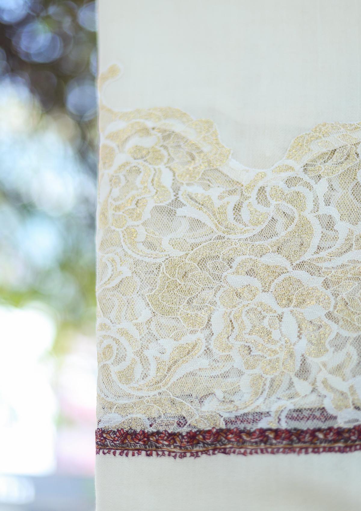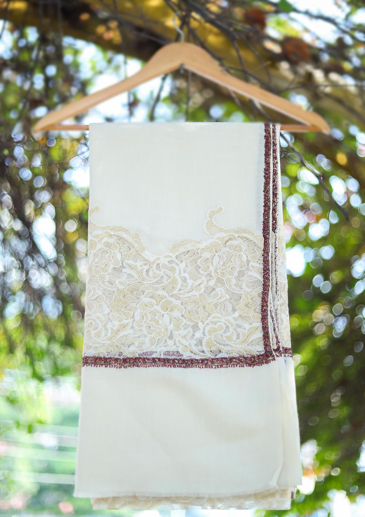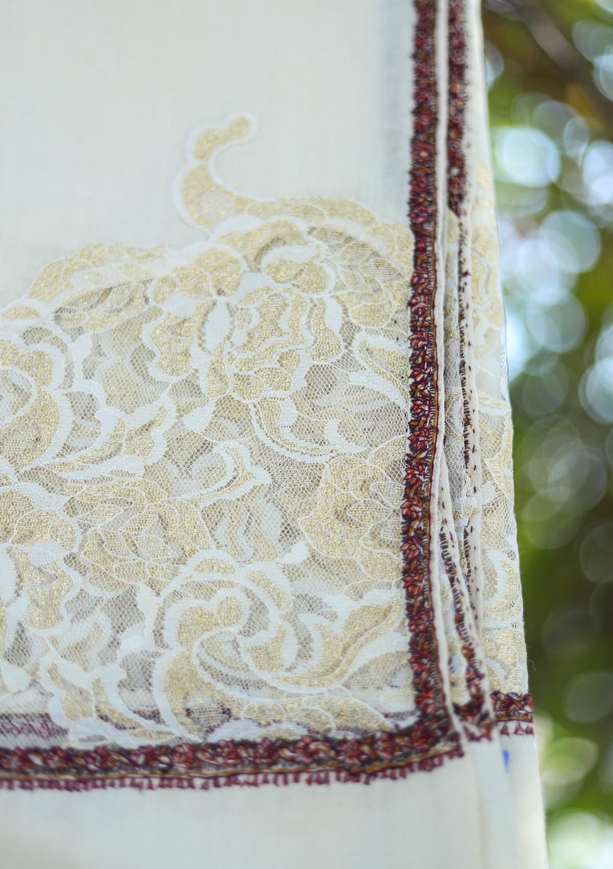 Pashmina Patch Work Shawl D - 13 - Off White