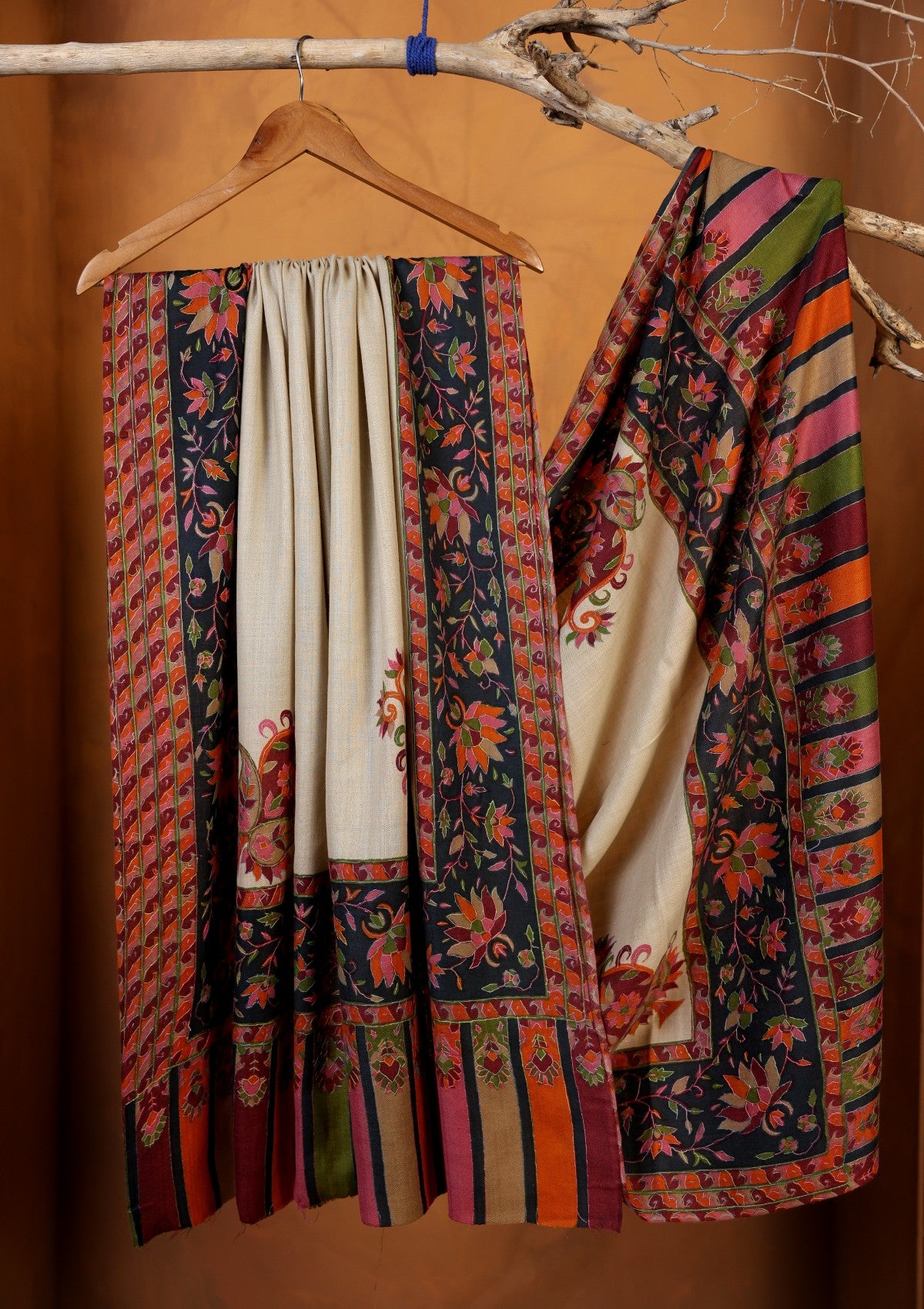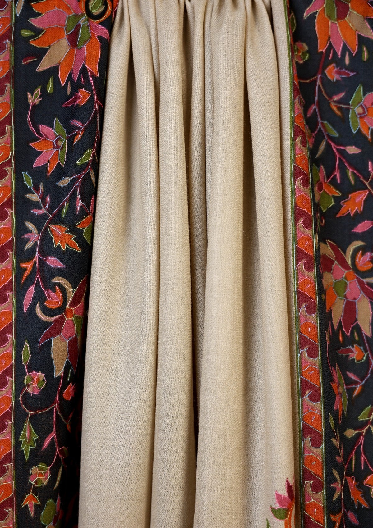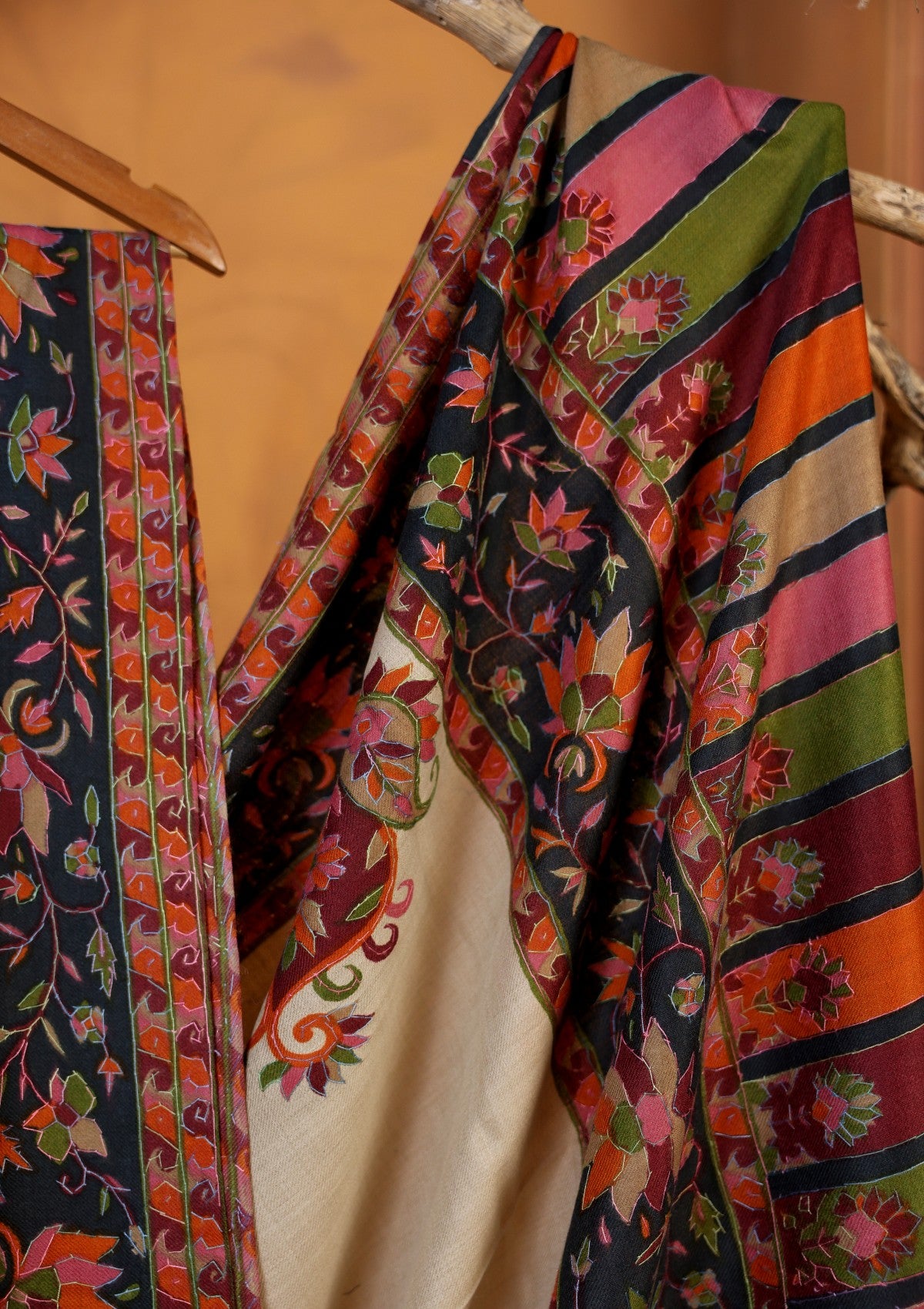 Pashmina Qalamkari Needle Work Shawl D#06 - Black