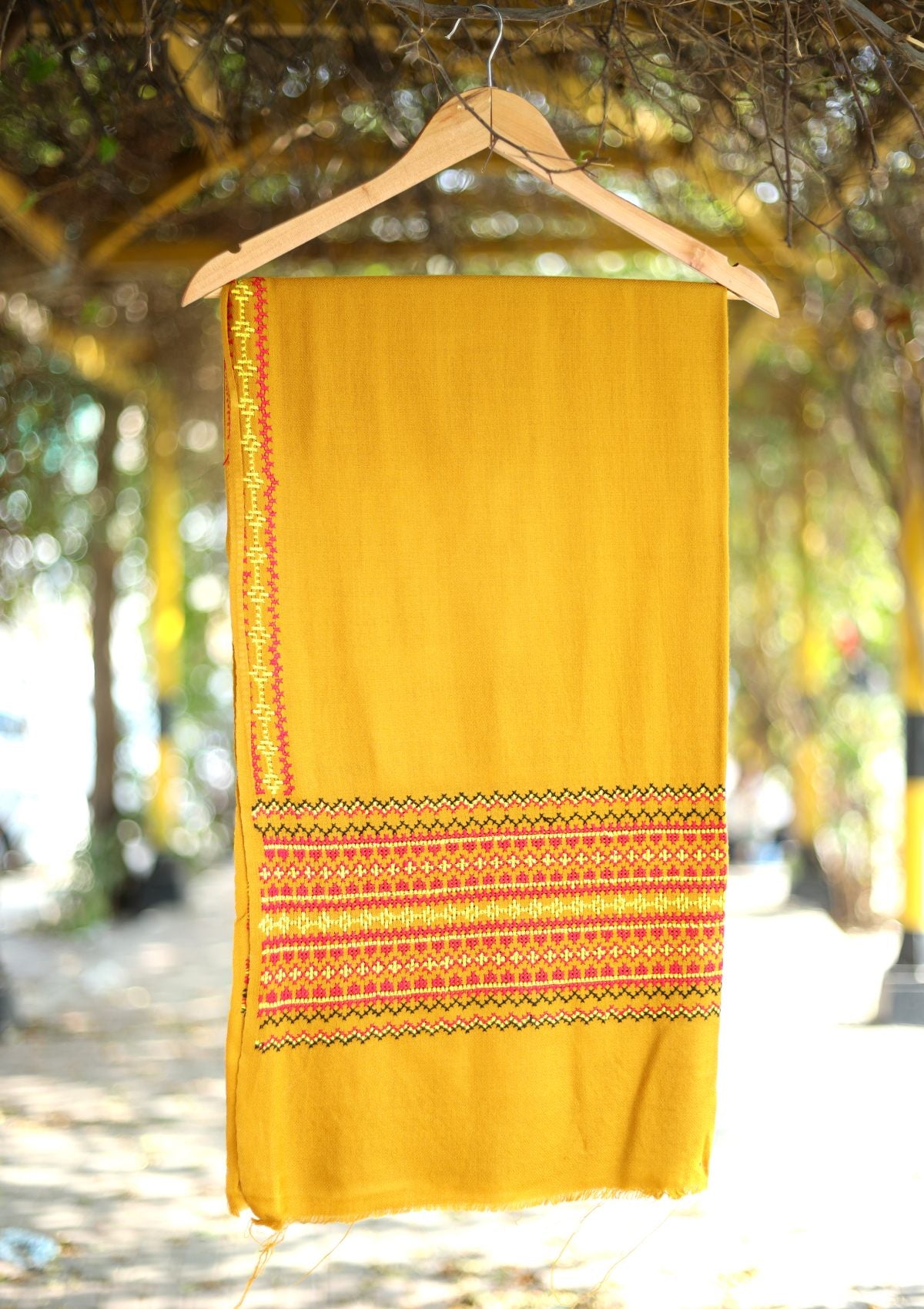 Pashmina Wool Needle Work Shawl D - 28 - Mustard