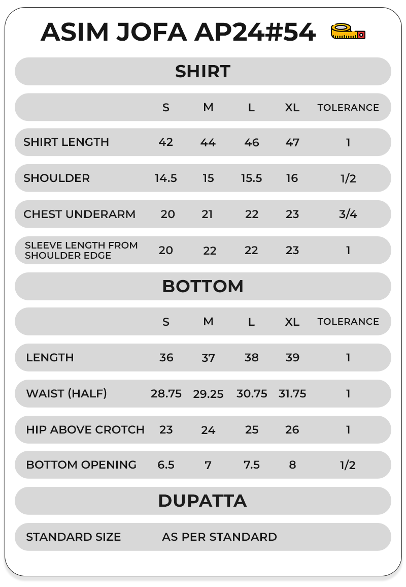 Package Includes: 3 Piece Top , Bottom & Dupatta
