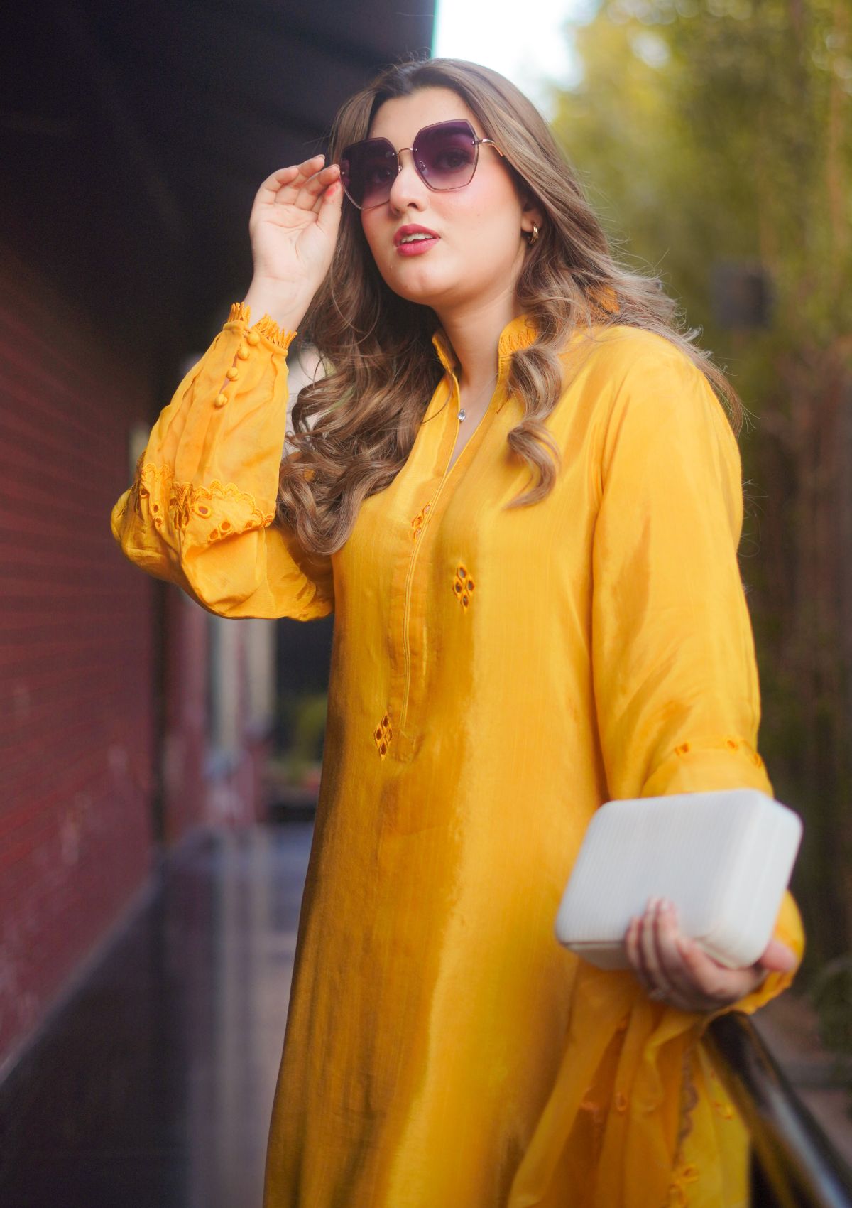 Elevate your style with this vibrant mustard 3-piece PK silk dress. Featuring intricate embroidery on the shirt, paired with matching shalwar and a beautifully adorned dupatta, this ensemble exudes sophistication and grace. Perfect for family gatherings or casual events, it’s a statement of elegance and charm.