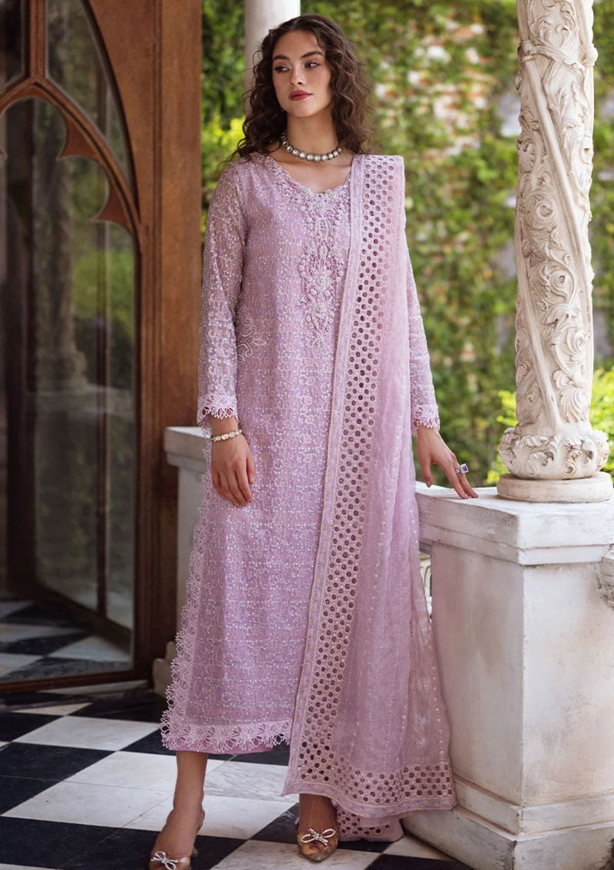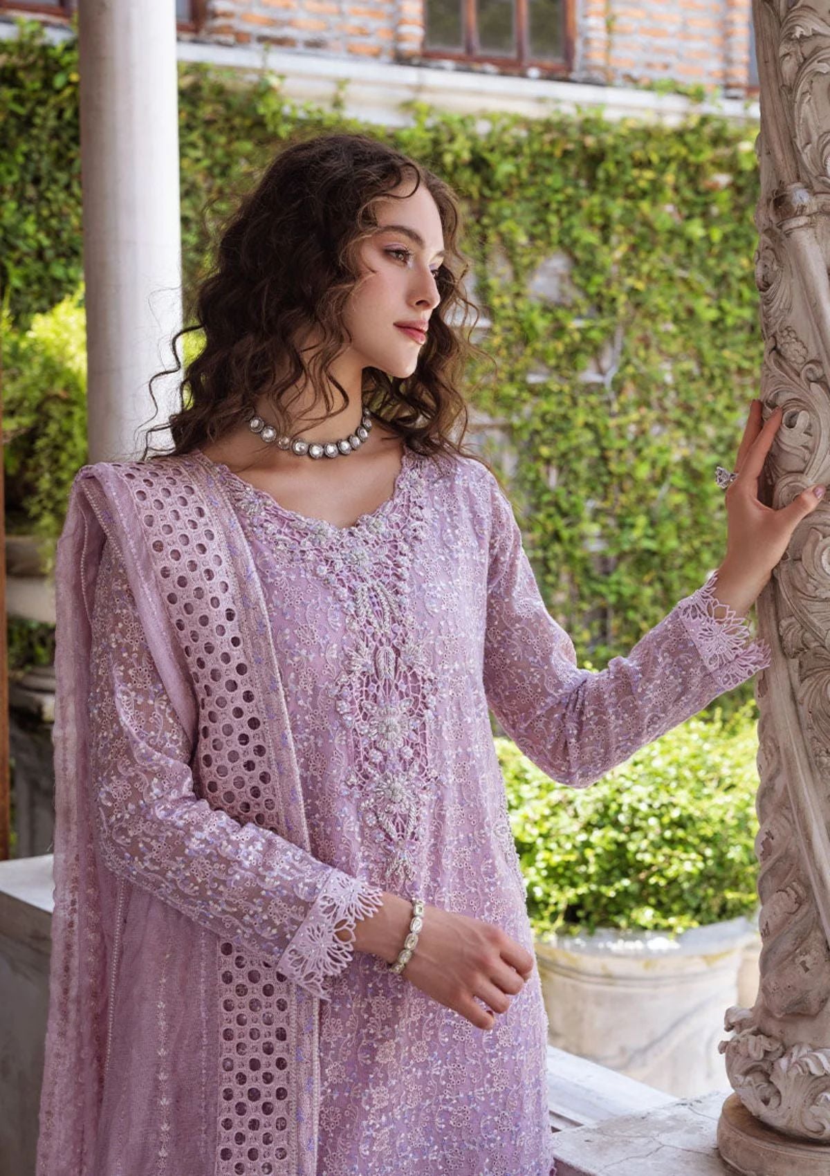 • Shirin, where every stitch paints a picture of refinement and beauty. Adorned with intricate Chikankari embroidery and delicate sequins, it is a masterpiece of elegance. The raw silk pants, Chikankari embroidered shirt with light sequins, chain, crystal buttons, milk lace insertions and borders, add a touch of enchanting charm, making every moment a treasured memory. This is a 3 pc outfit.