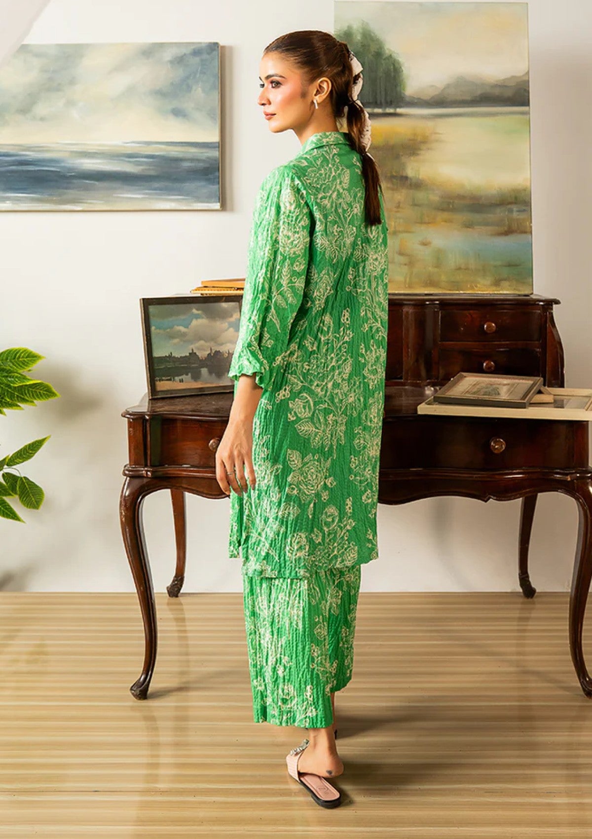 Step into sophistication with this two-piece set. The lightweight cotton and naturally crinkled texture let your skin breathe, while the easy-fit shirt and straight trousers deliver a relaxed yet refined silhouette.