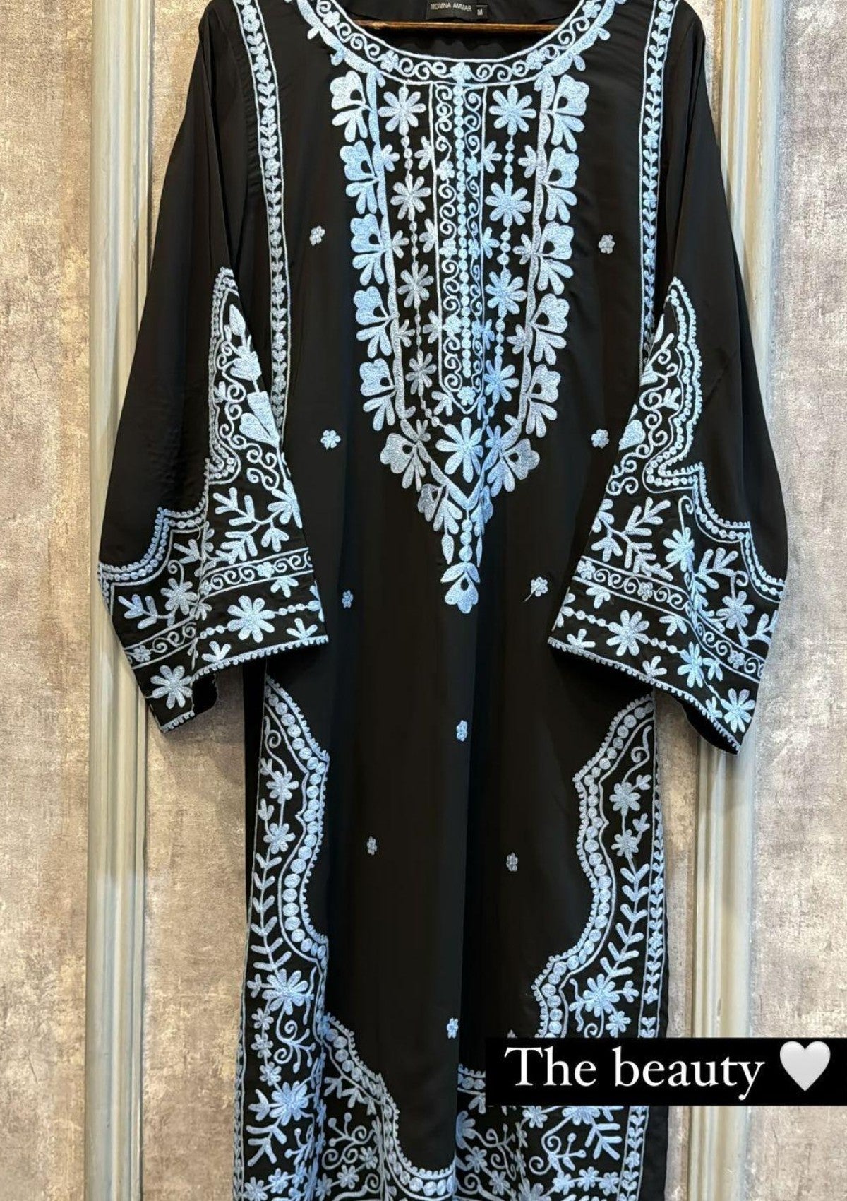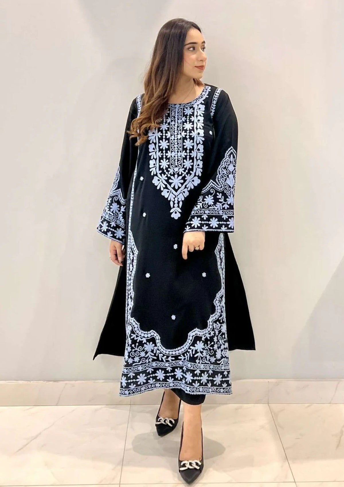 • Beautiful fusion of colour, embroidery on long shirt with plain pants