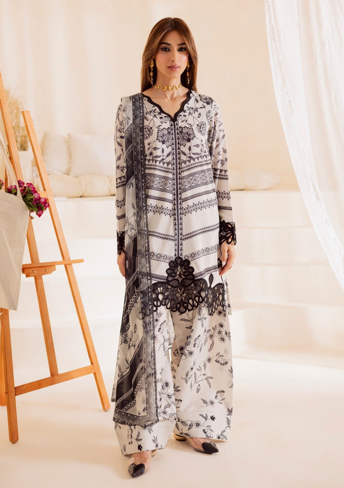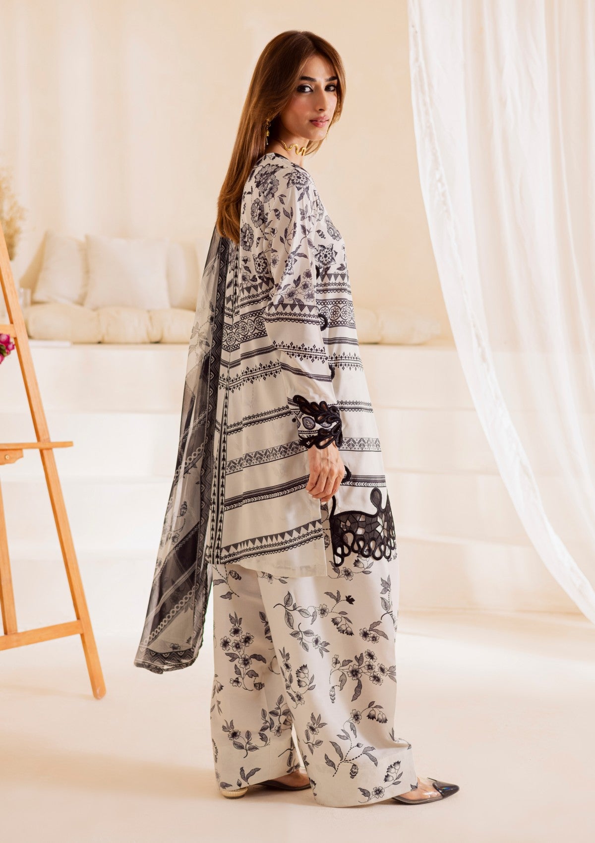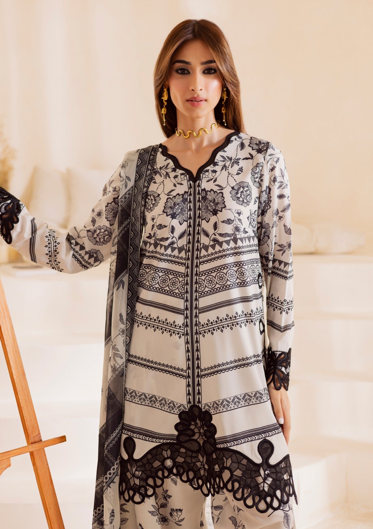 Embroidered And Printed Lawn Silk Shirt Paired With Printed Chiffon Dupatta And Printed Trouser
