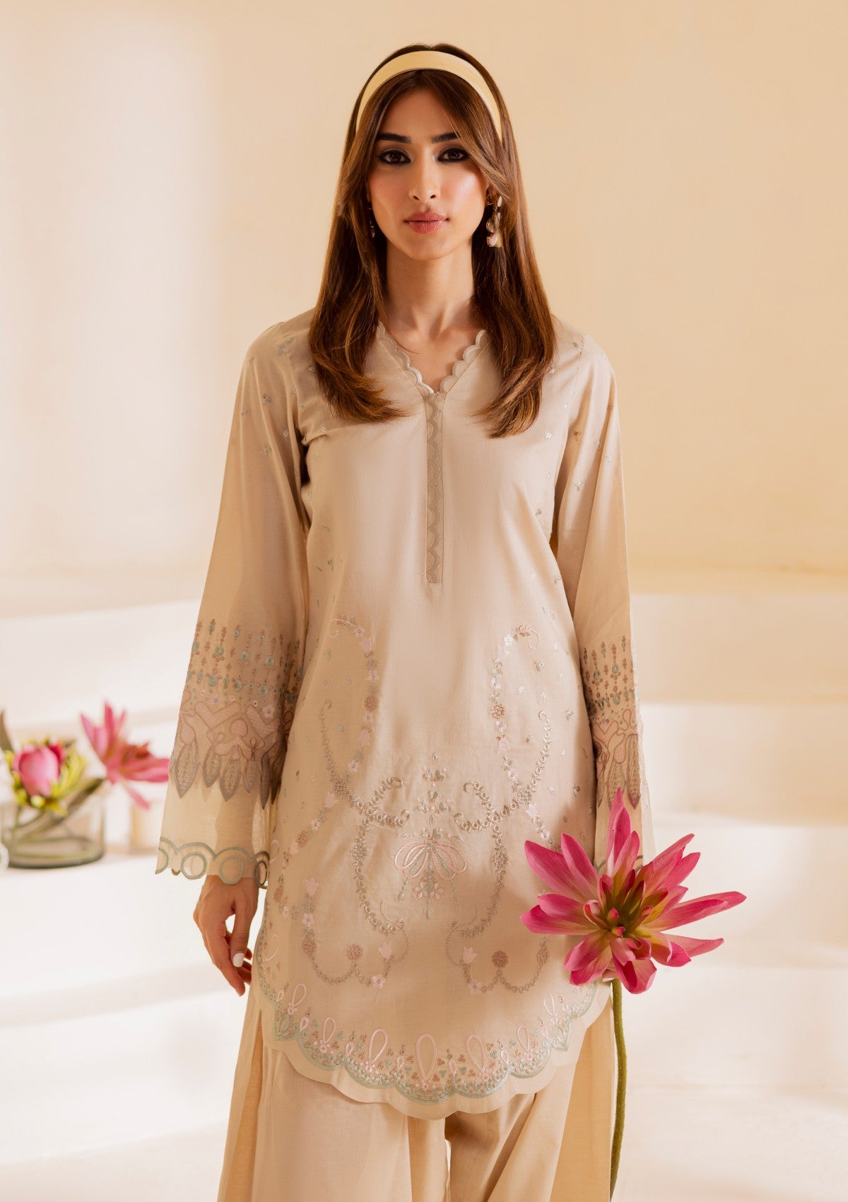 • Embroidered Lawn Shirt Paired With Embroidered Farshi Shalwar