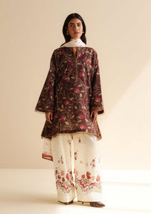 Button-up shirt featuring asymmetric embroidery, paired with culottes embroidered pants.