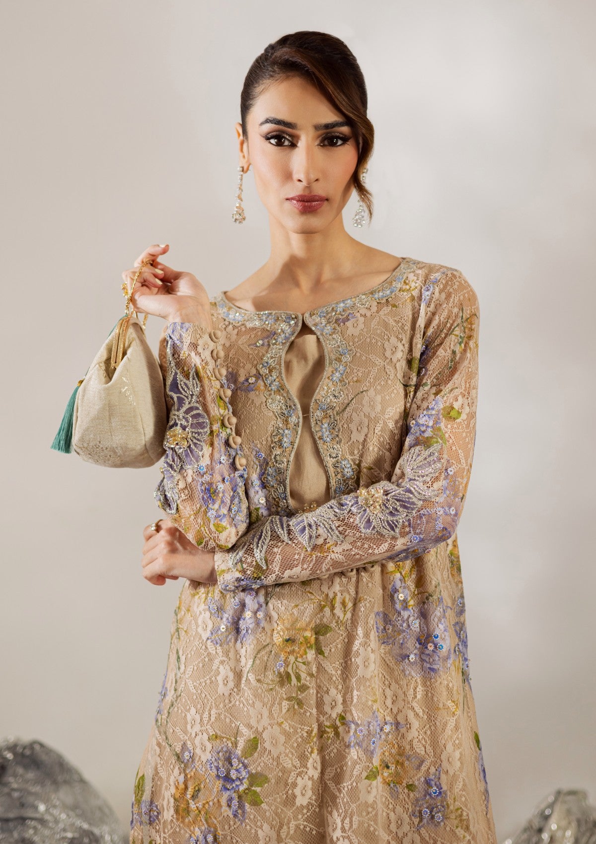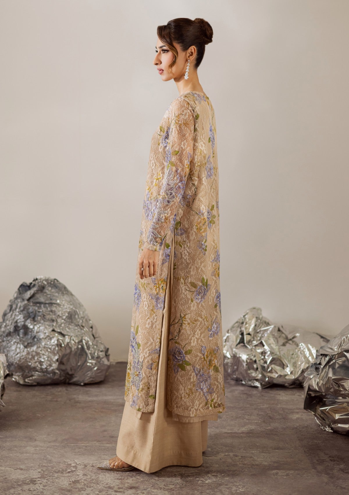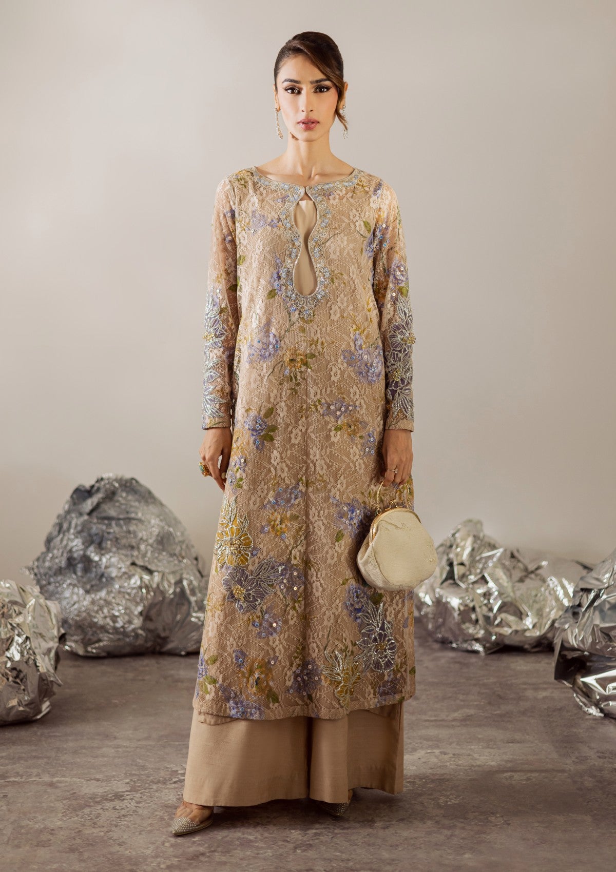 • Chantelle dress featuring an elegantly crafted long shirt, adorned with delicate embroidery and exquisite hand embellishments paired with raw silk wide-legged trouser