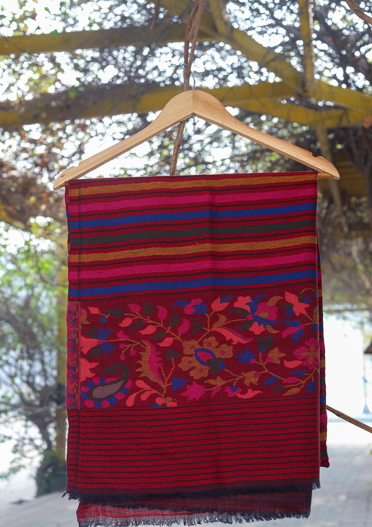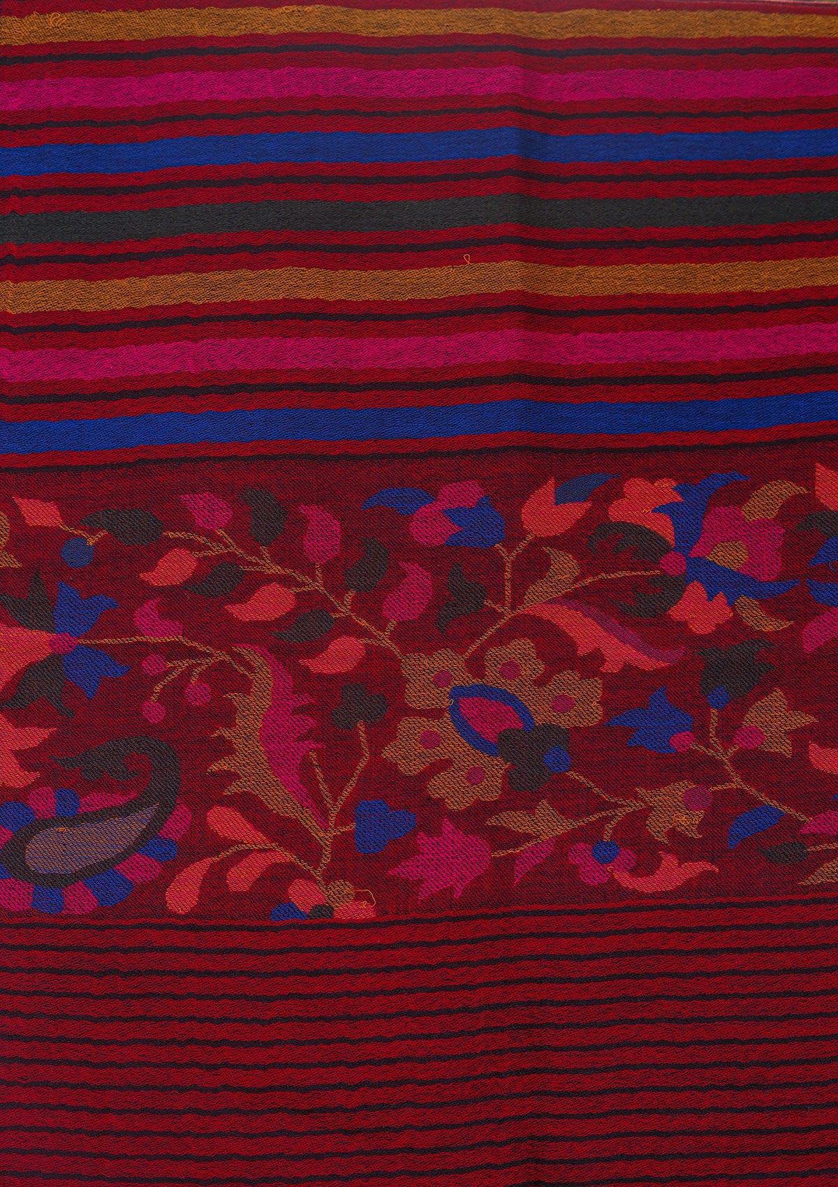 Pure Pashmina Kaani Jamawar Scarf D - 14C - Maroon