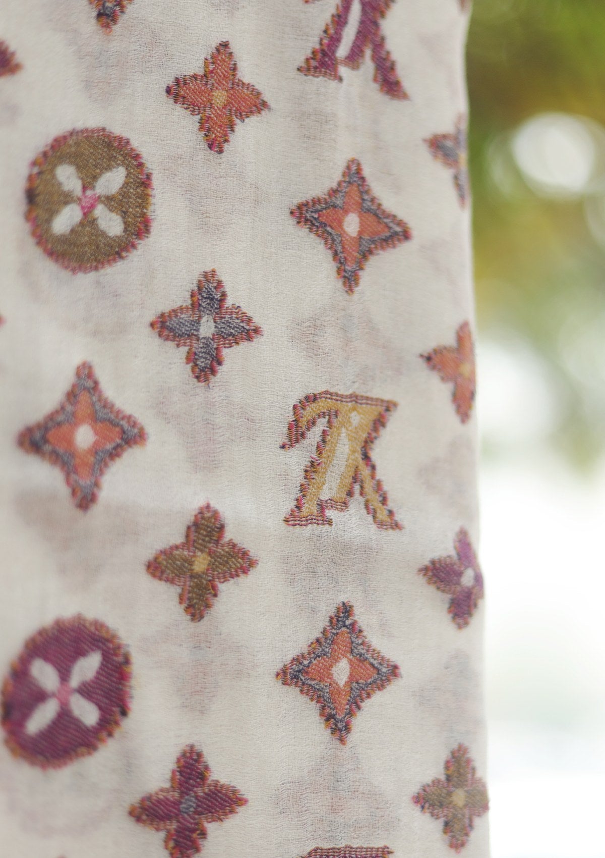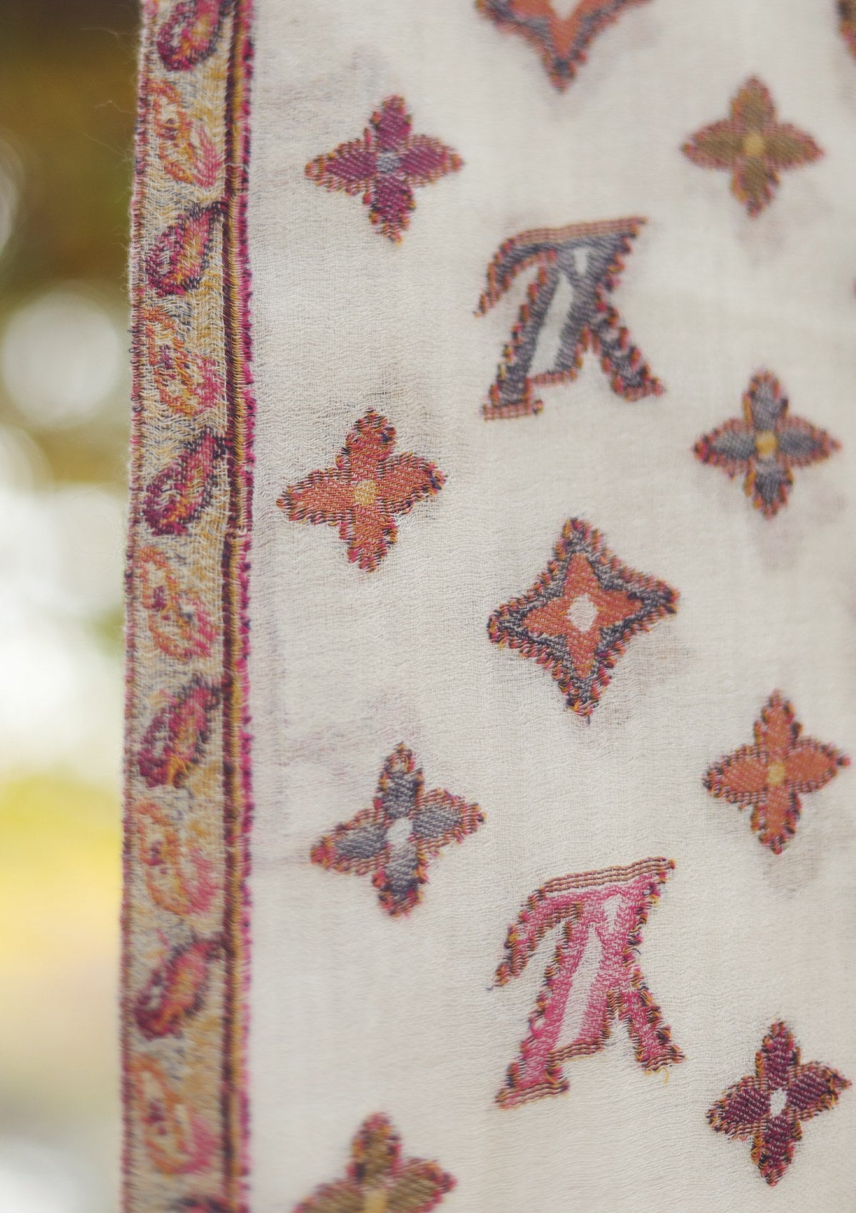 Pure Pashmina Kaani Jamawar Shawl D - 110 - OFF WHITE
