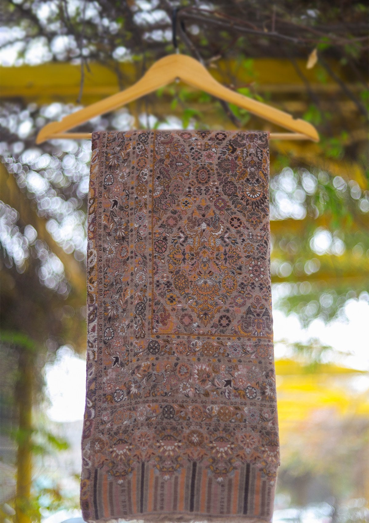 Pure Pashmina Kaani Jamawar Shawl D - 111 - Brown