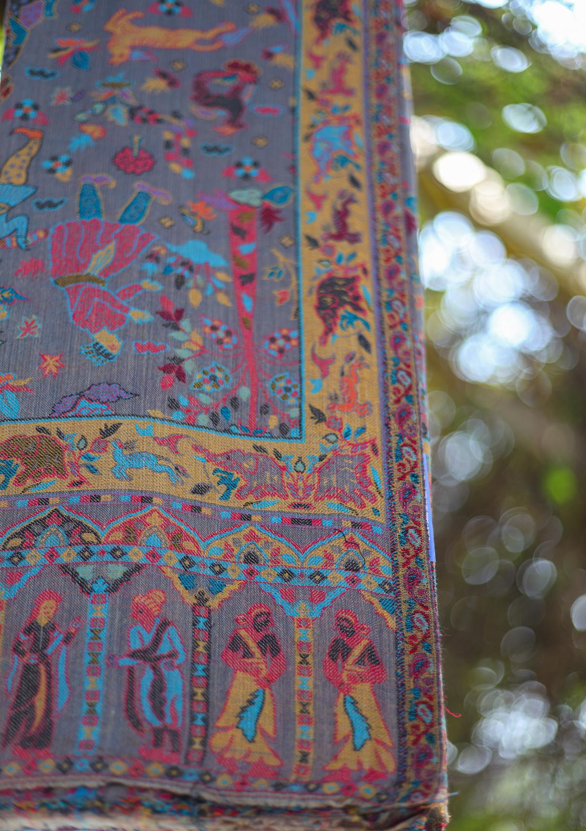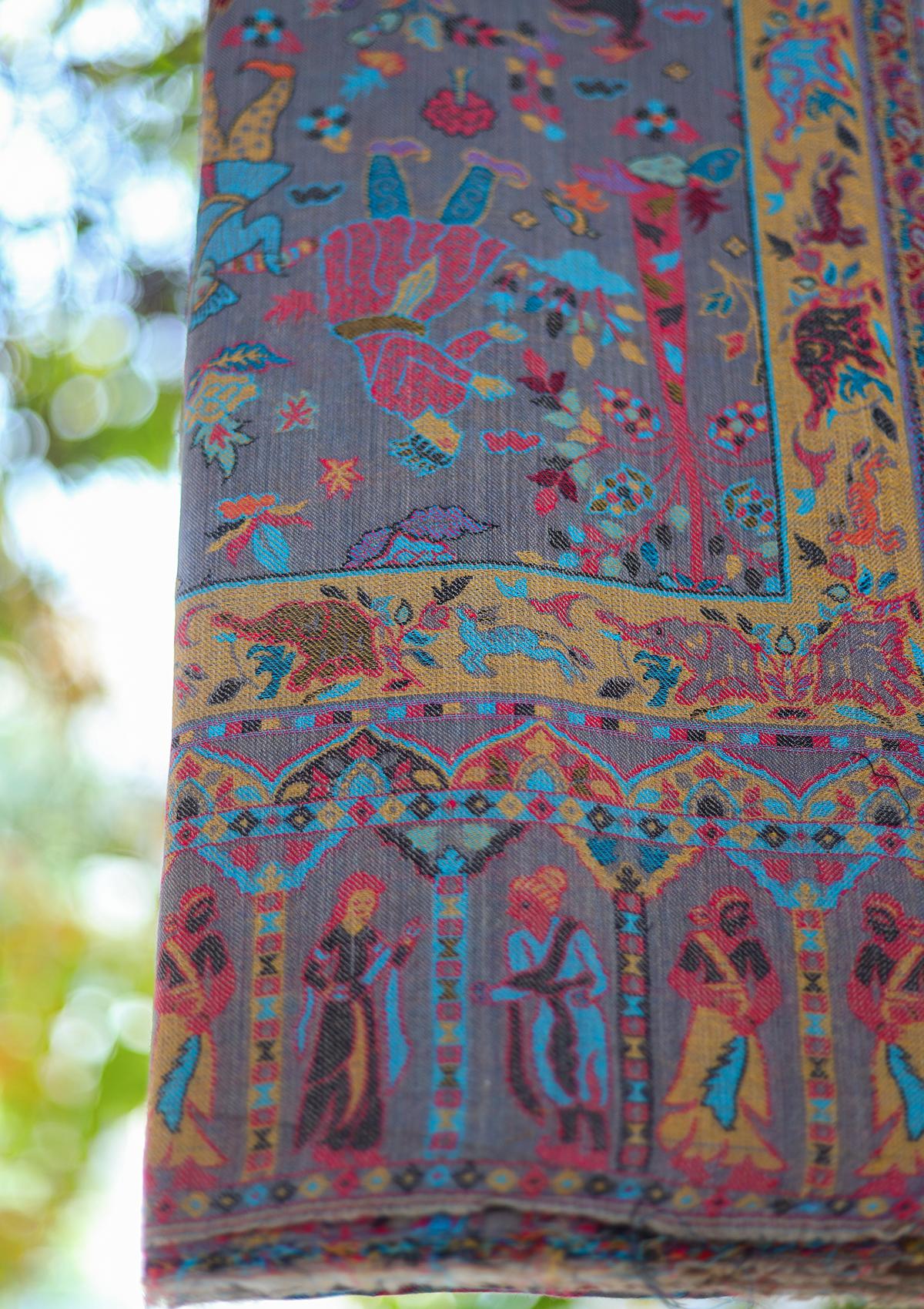 Pure Pashmina Kaani Jamawar Shawl D - 59 - M Grey