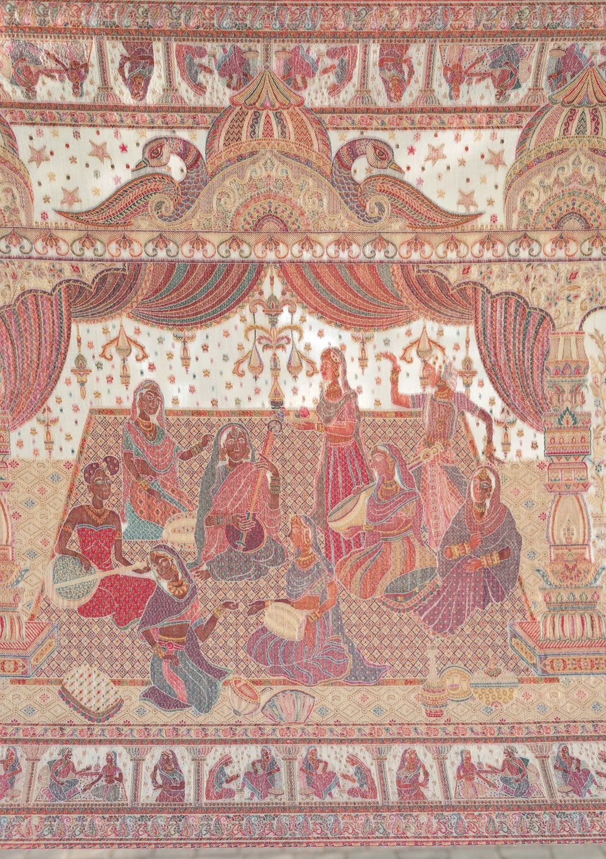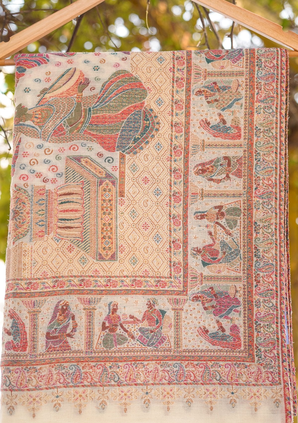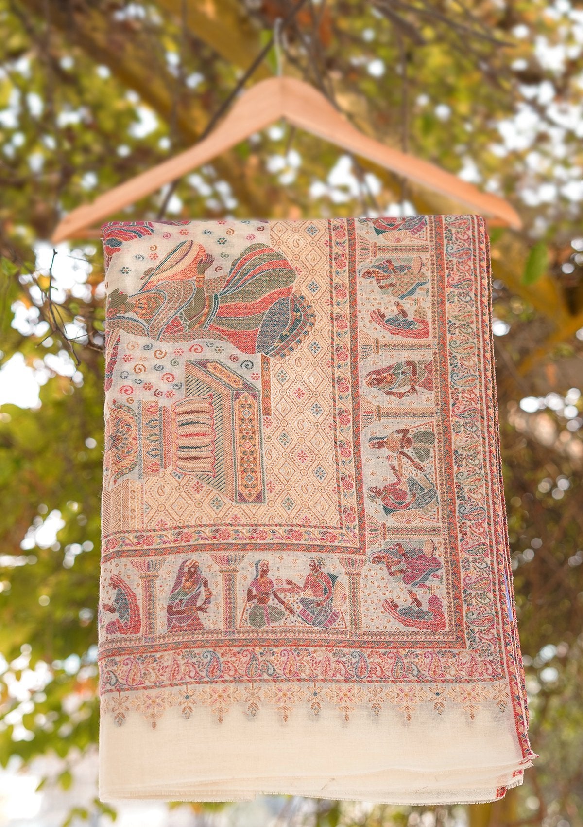 Pure Pashmina Kaani Jamawar Shawl D - 76 - Cream
