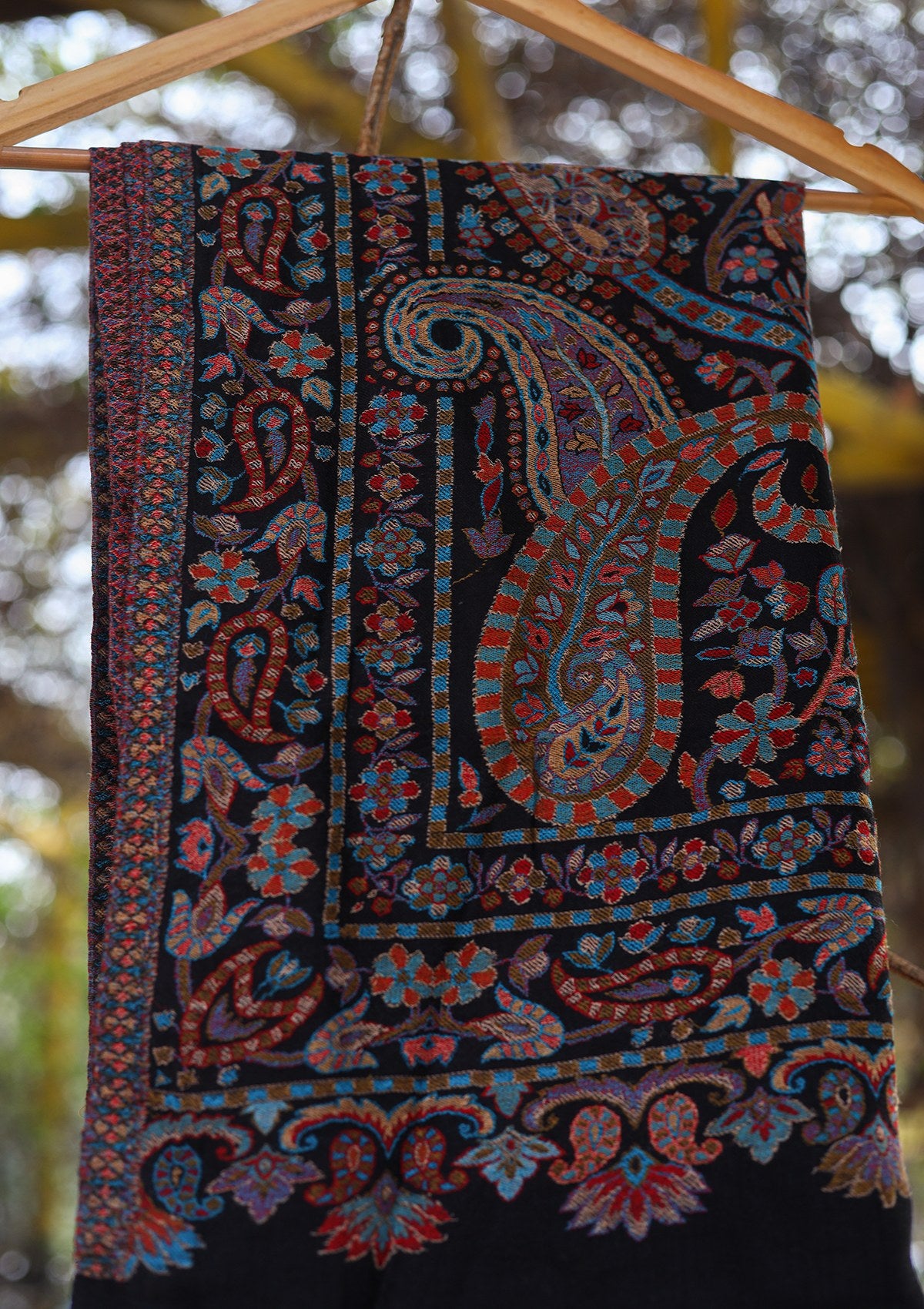 Pure Pashmina Kaani Shawl D - 01C - Black