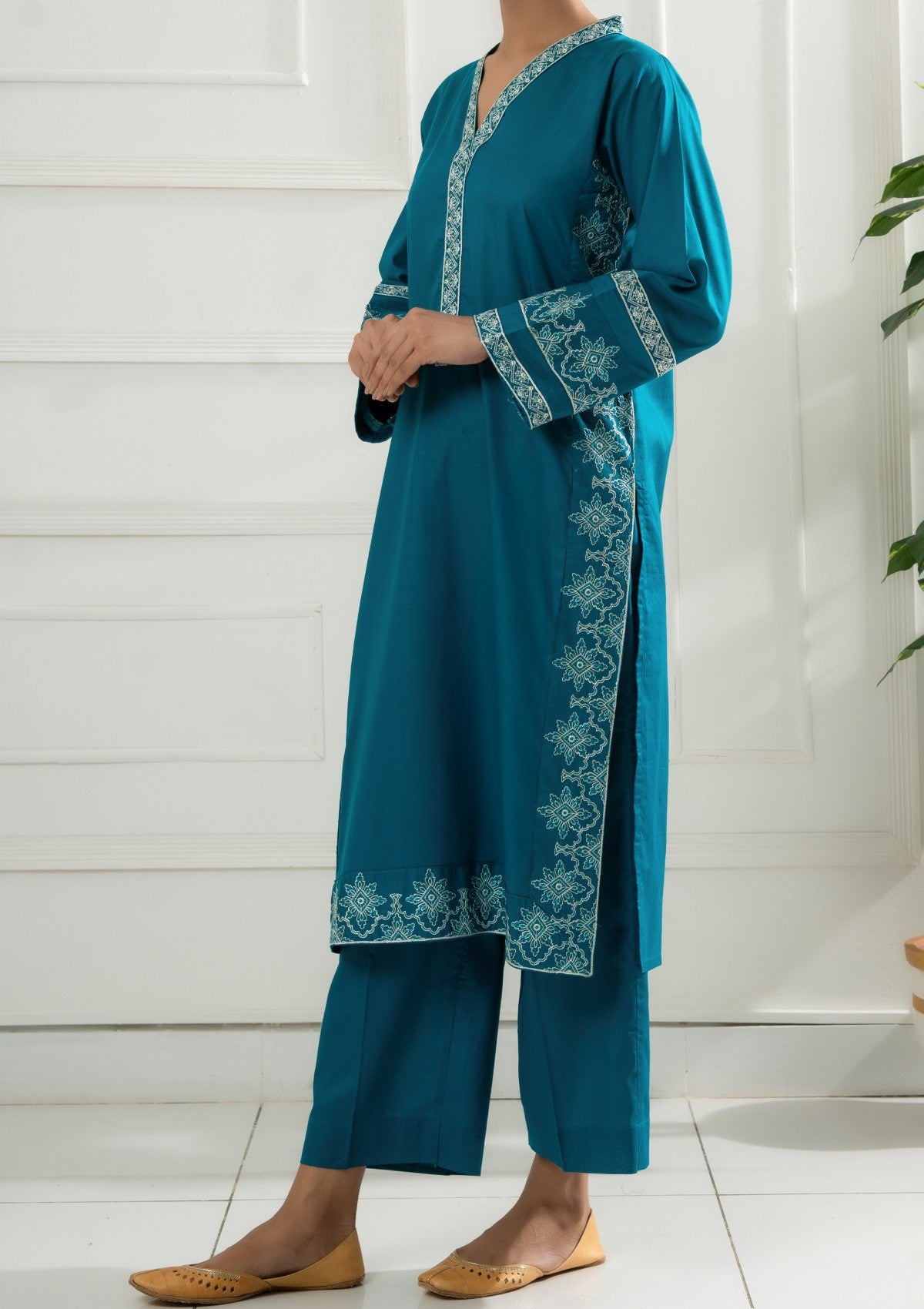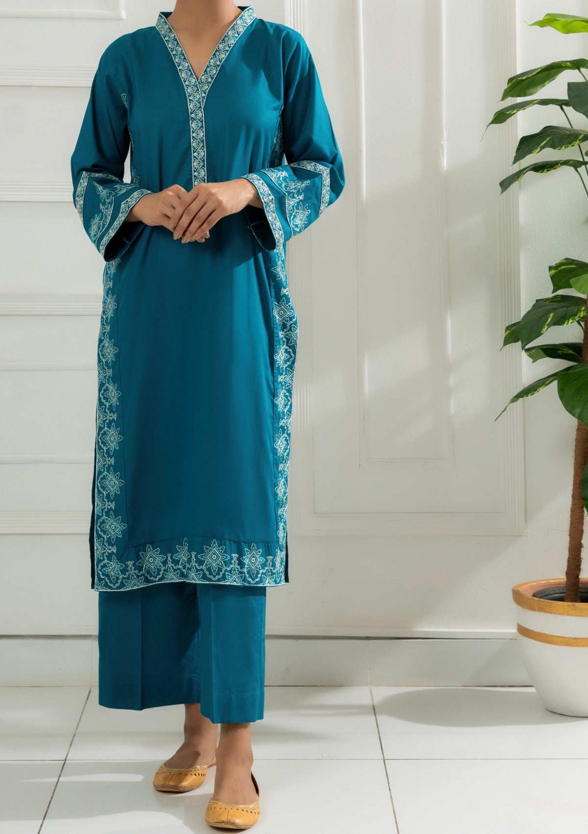 • 2PCS Lawn Embroidered Shirt and Trouser
