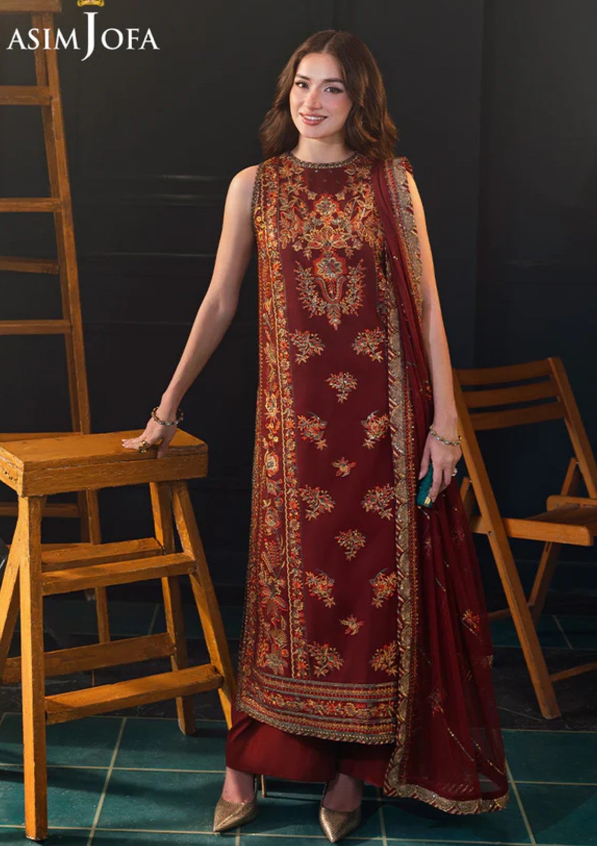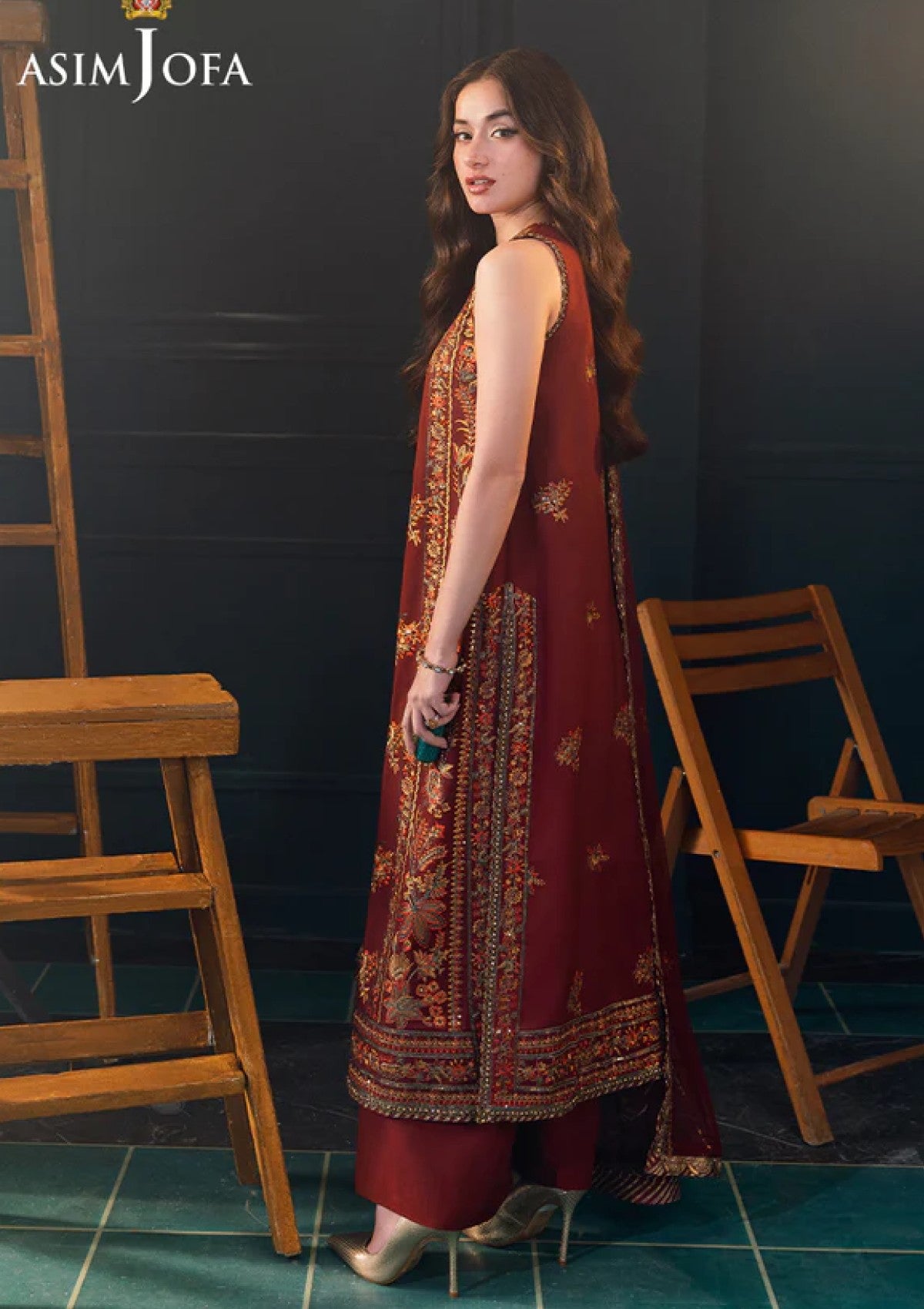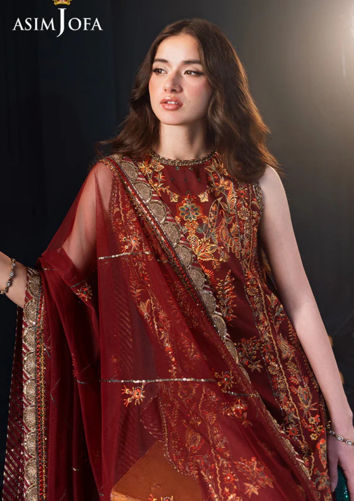 Draped in the richness of rust hue, this ensemble strikes a perfect balance between tradition and artistry. The shirt is beautifully embroidered with rust and sage green threadwork, brought to life with copper sequins that glisten warmly against the deep hue. Antique gold two-toned zari adds a touch of timeless opulence, elevating every intricate detail. Paired with a gorgeously embroidered dupatta, the outfit radiates an aura of classic grandeur, making it an ideal choice for distinguished occasions.