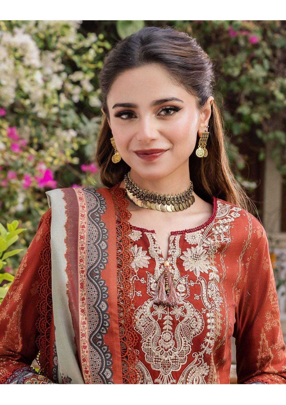Indulge in the allure of rustic charm with this exquisite number. Combining traditional motifs and radiant embroidery on the neckline, this ensemble, paired with a maysori dupatta, exudes an irresistible ethnic charm that's sure to captivate your style this season.