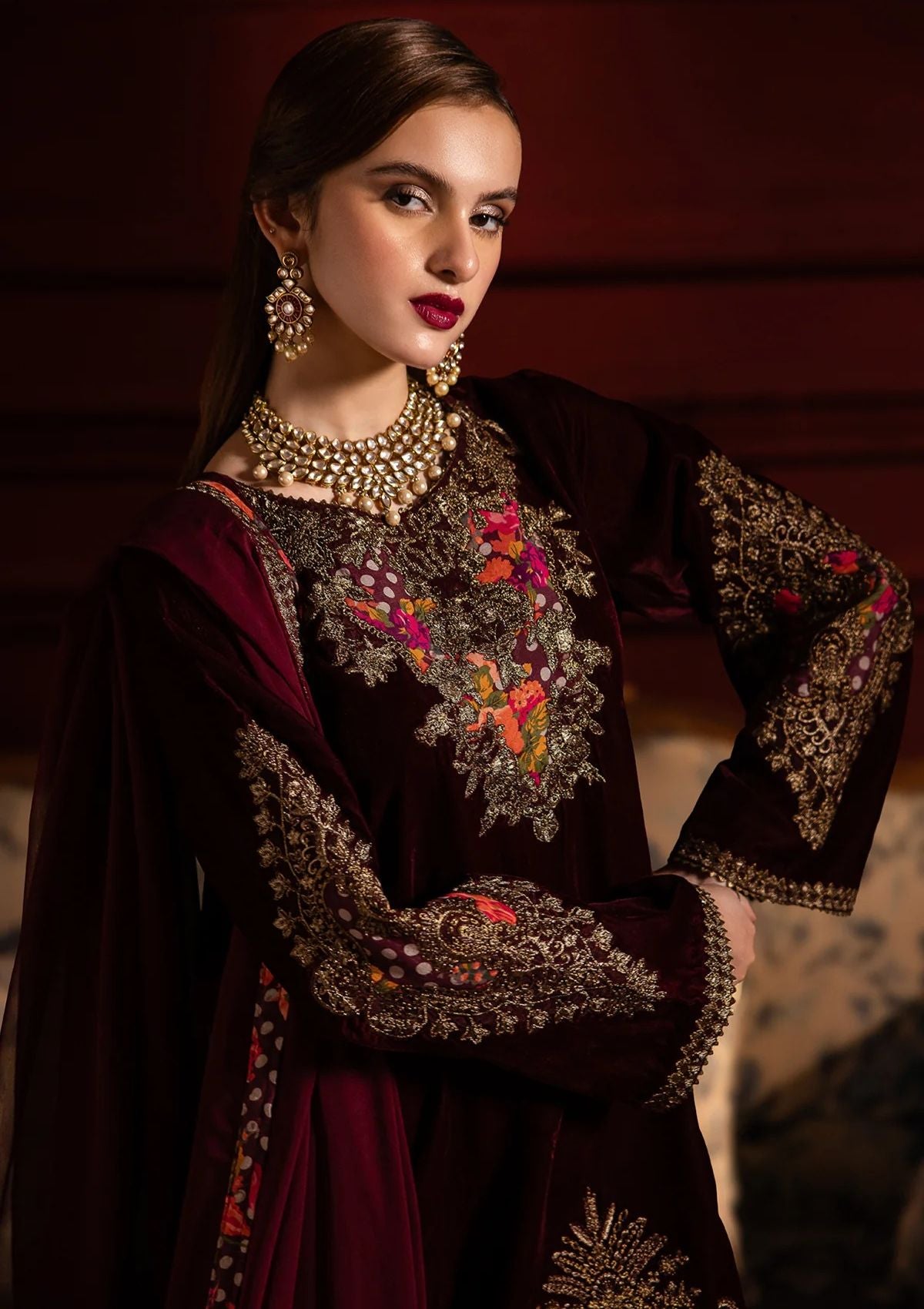 Embroidery Dyed Velvet Front 1.25 Mtr