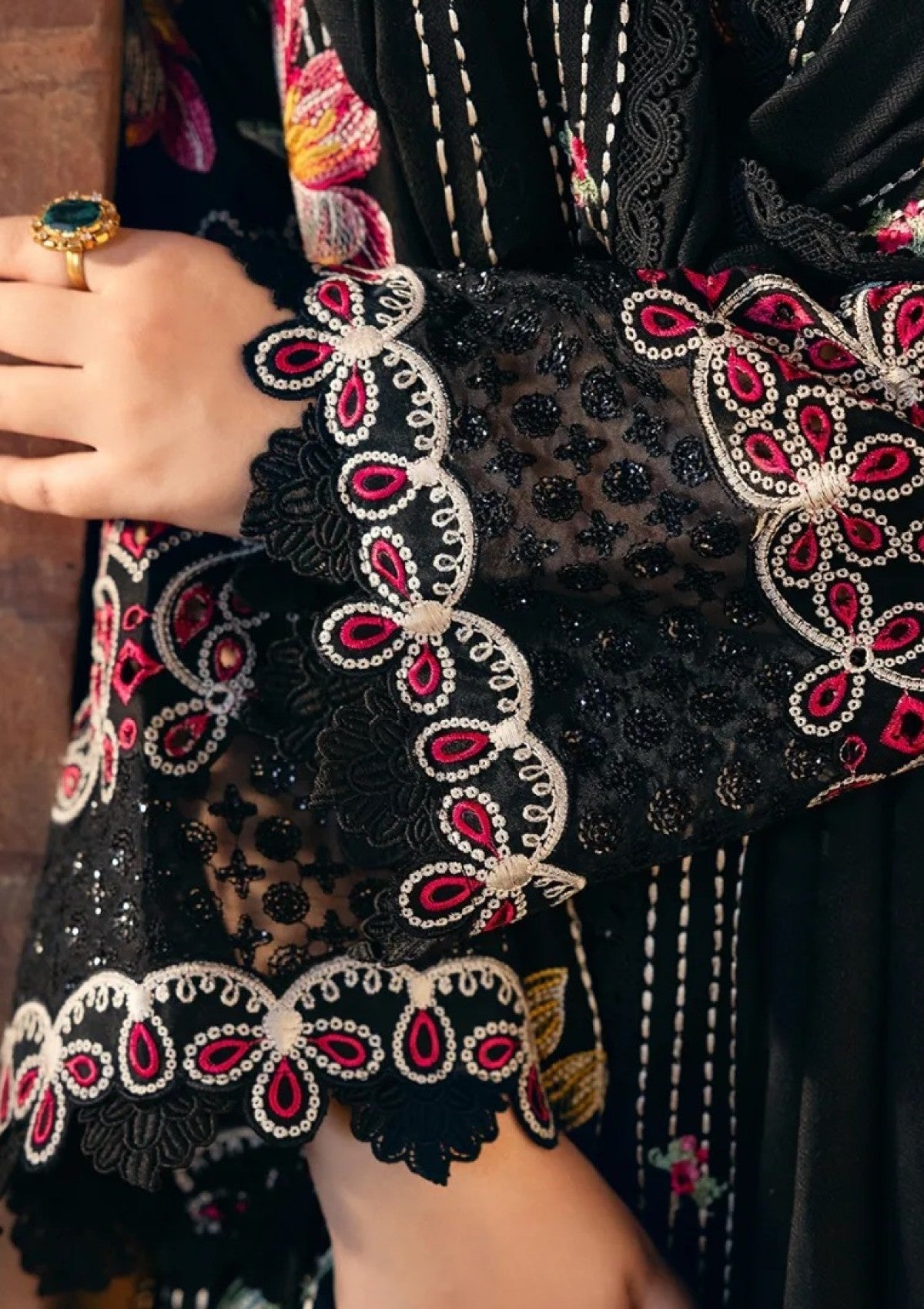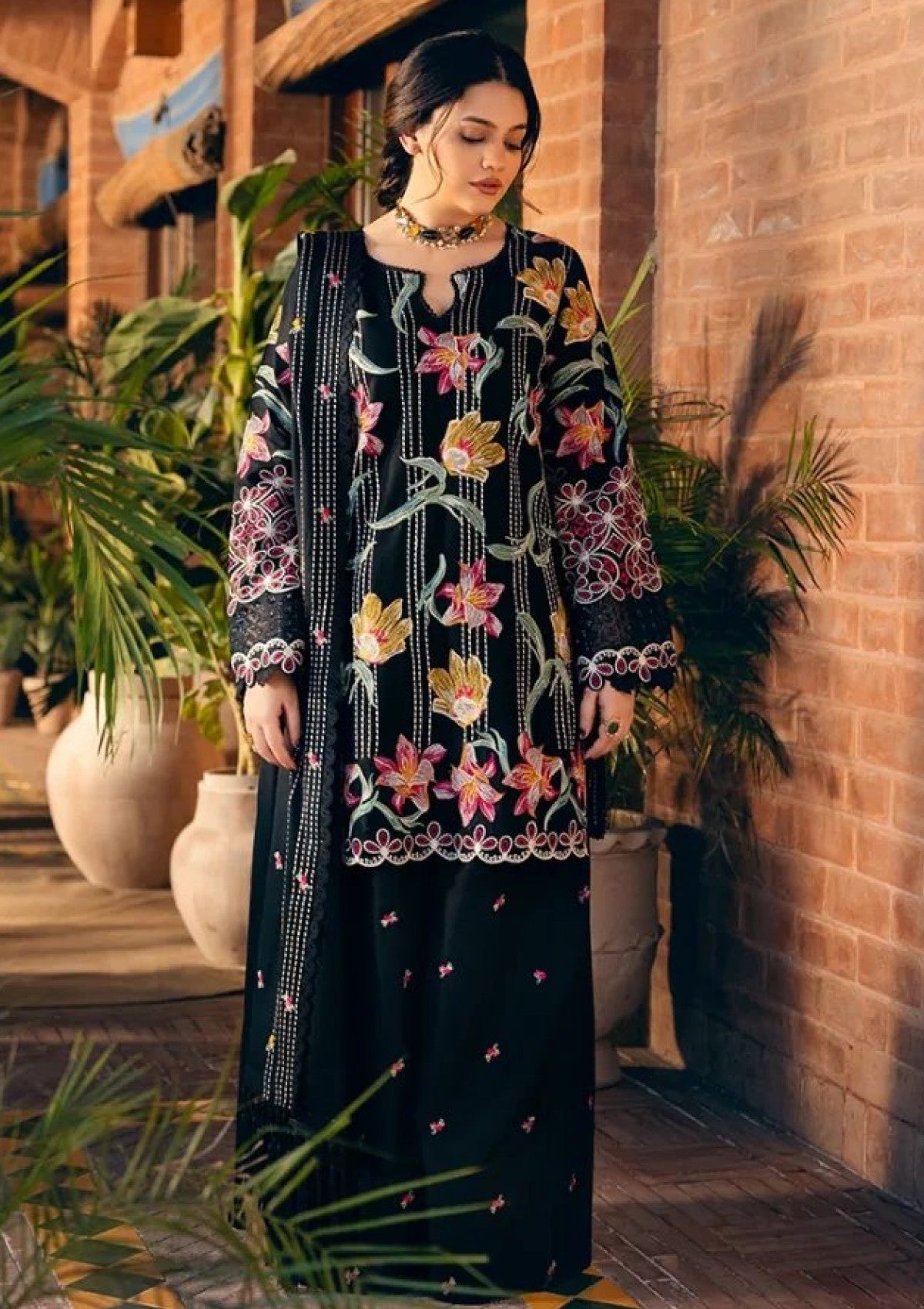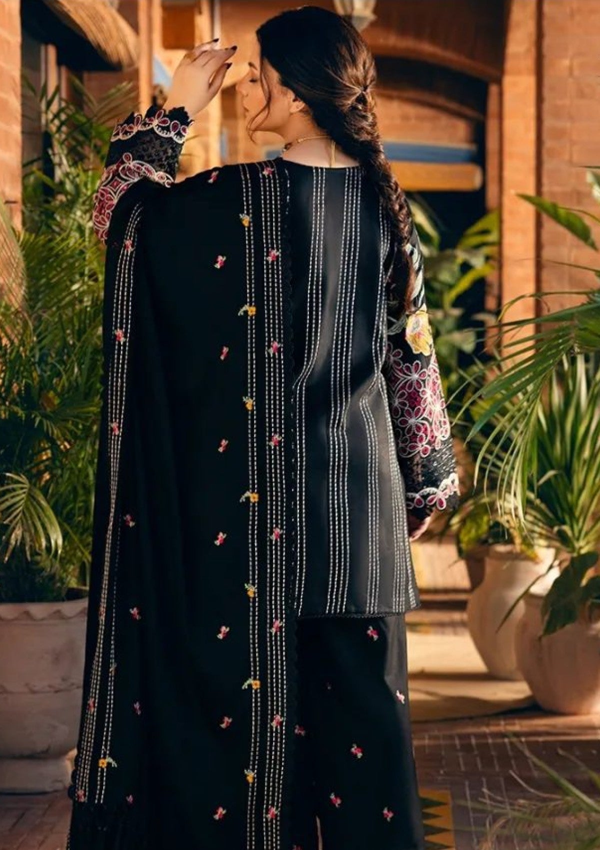 • Rich in detail, Kantha is an aesthetically woven 3-piece unstitched black outfit, based on quality Karandi fabric. The shirt is fused with floral motifs in yellow and pink hues, with ancient Kantha embroidery on the shirt, sleeves, and daaman, paired with a complementary black embroidered sequenced bordered shawl and shalwar, making it perfect for your winter evenings.