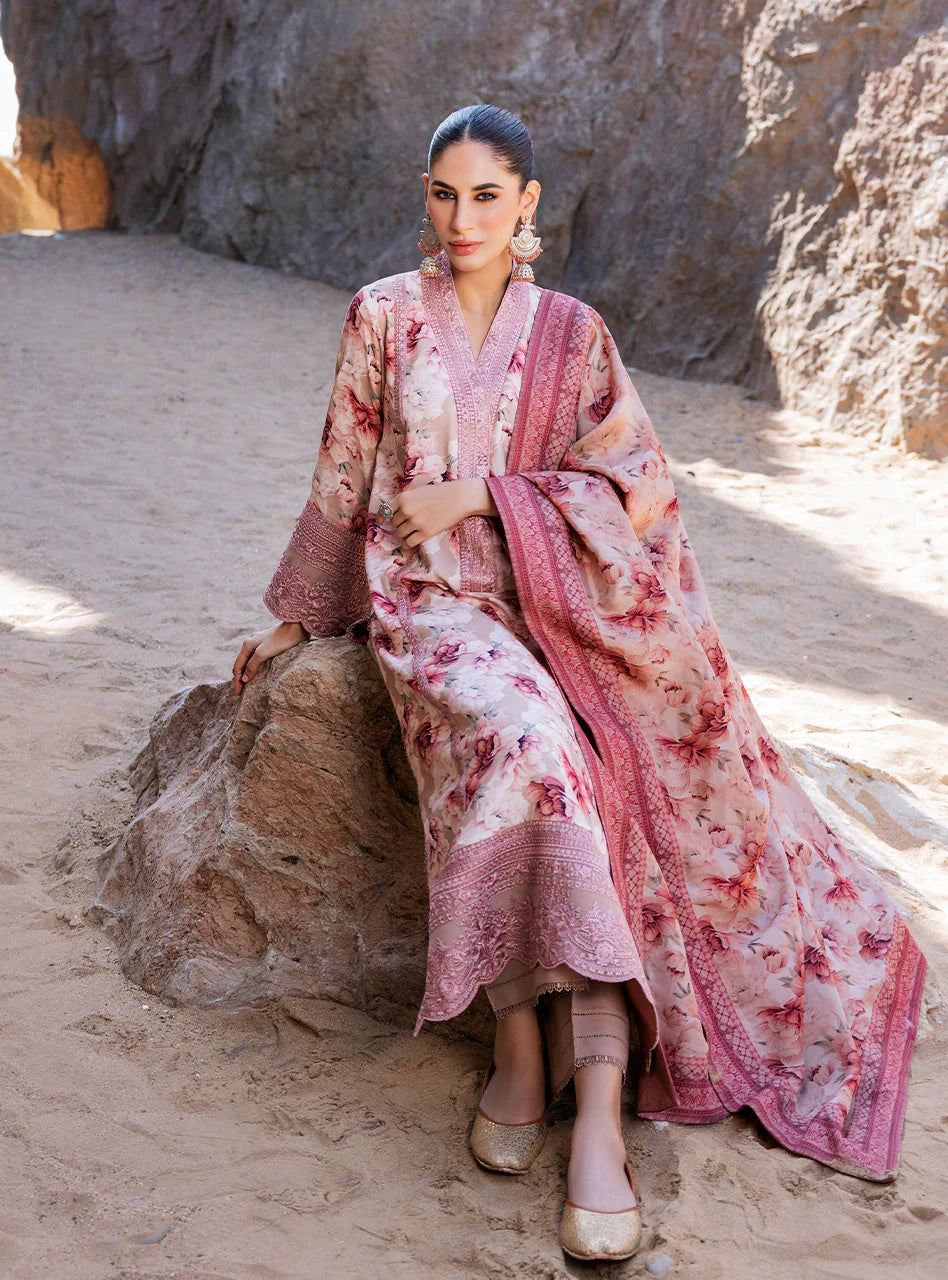 The versatility of Shyra’s floral print ensures they seamlessly integrate into your winter wardrobe; the thoughtful use of color enhances the overall design. This subtle floral ensemble is complimented with a floral printed shawl and a solid pant. The fine fabric enhances the richness of the prints, ensuring that every detail stands out with elegance.