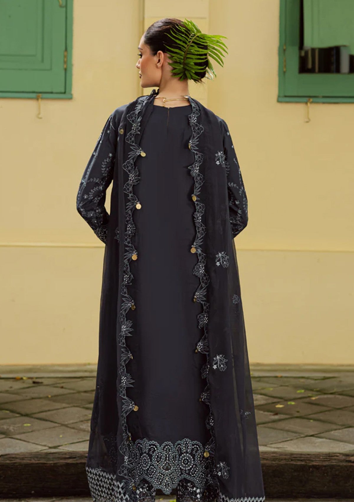 • Dyed Organza Embroidered Neckline