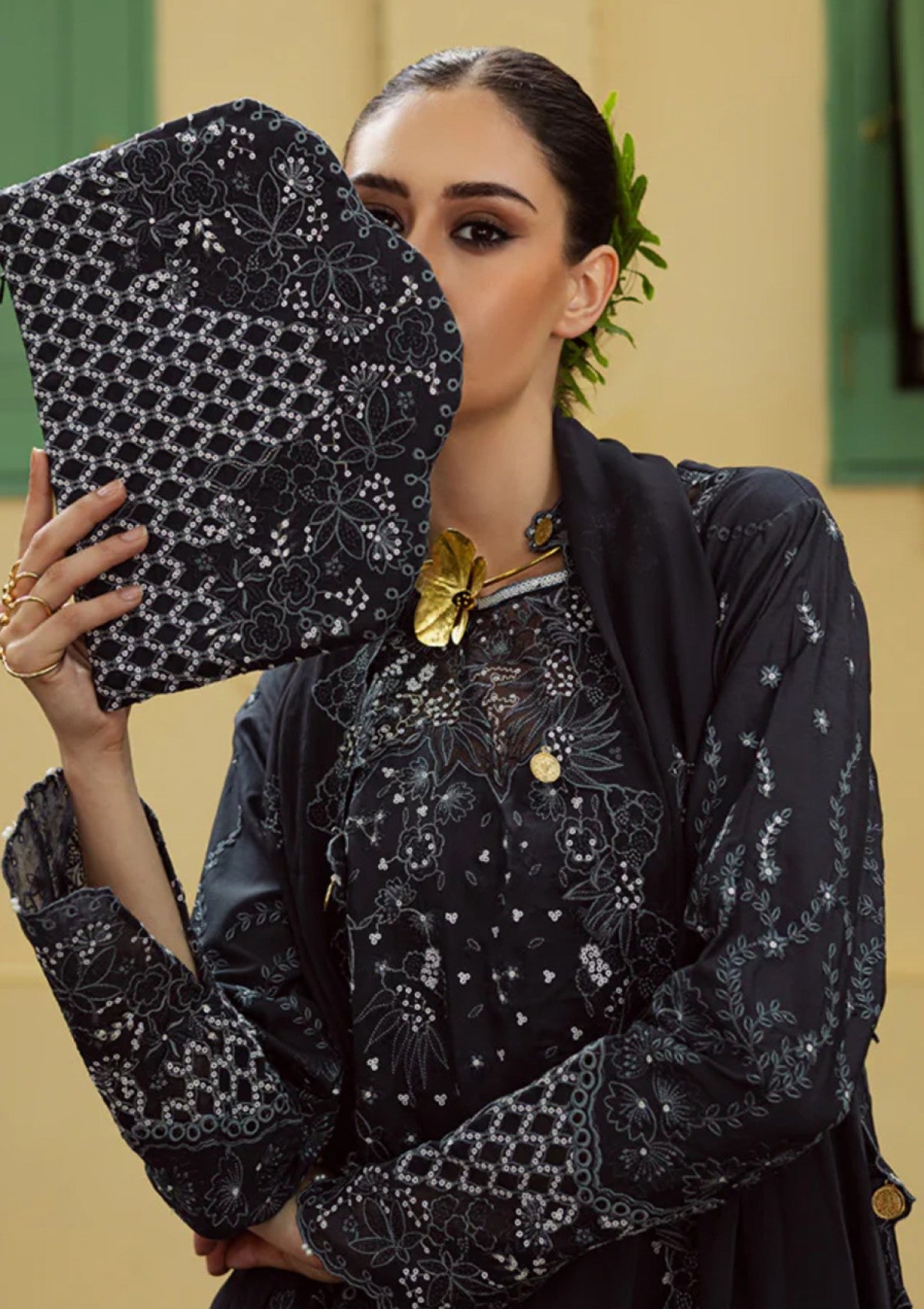 • Dyed Viscose Sequins Embroidered Front