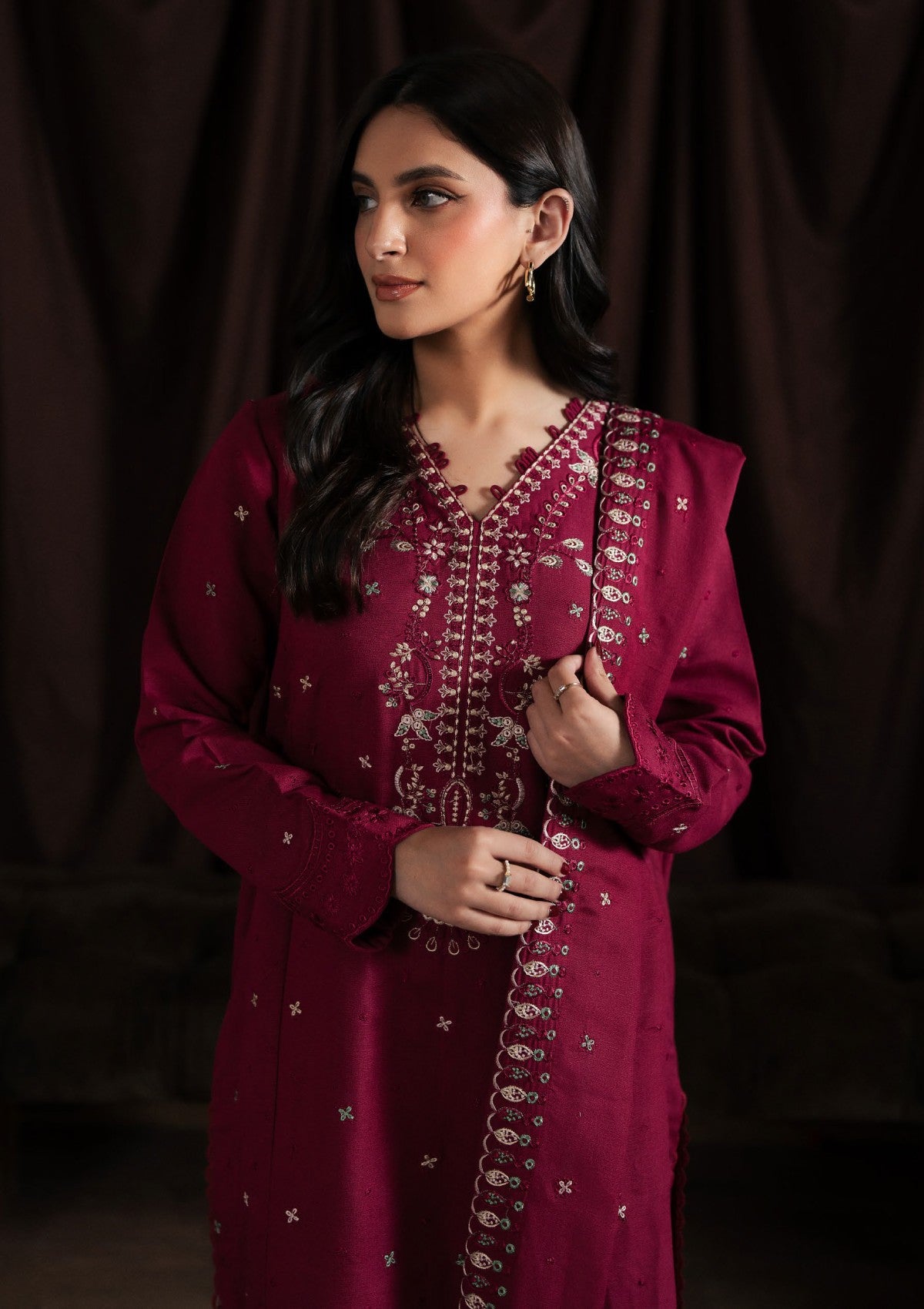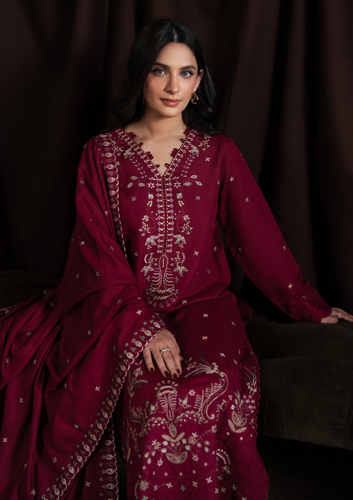 • EMBROIDERED KARANDI SHAWL PALLU. (2-PIECES)