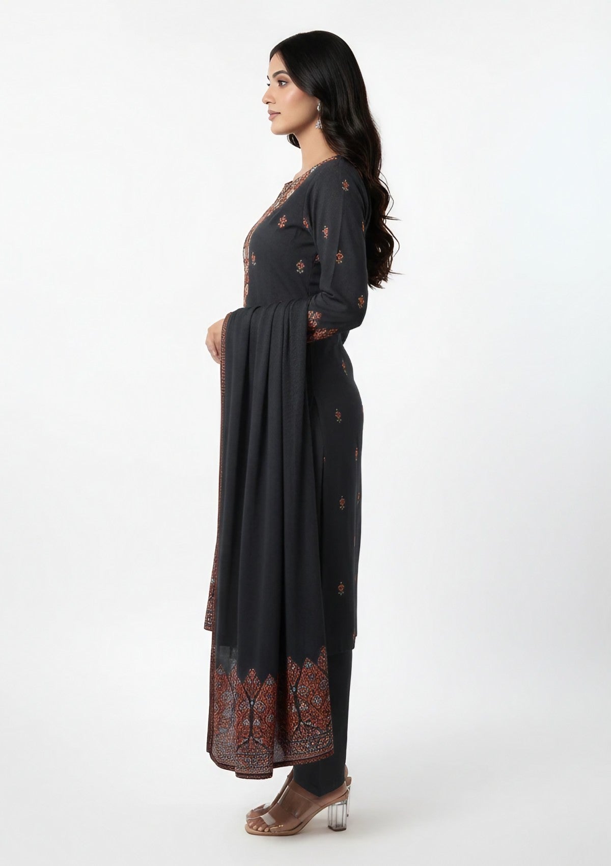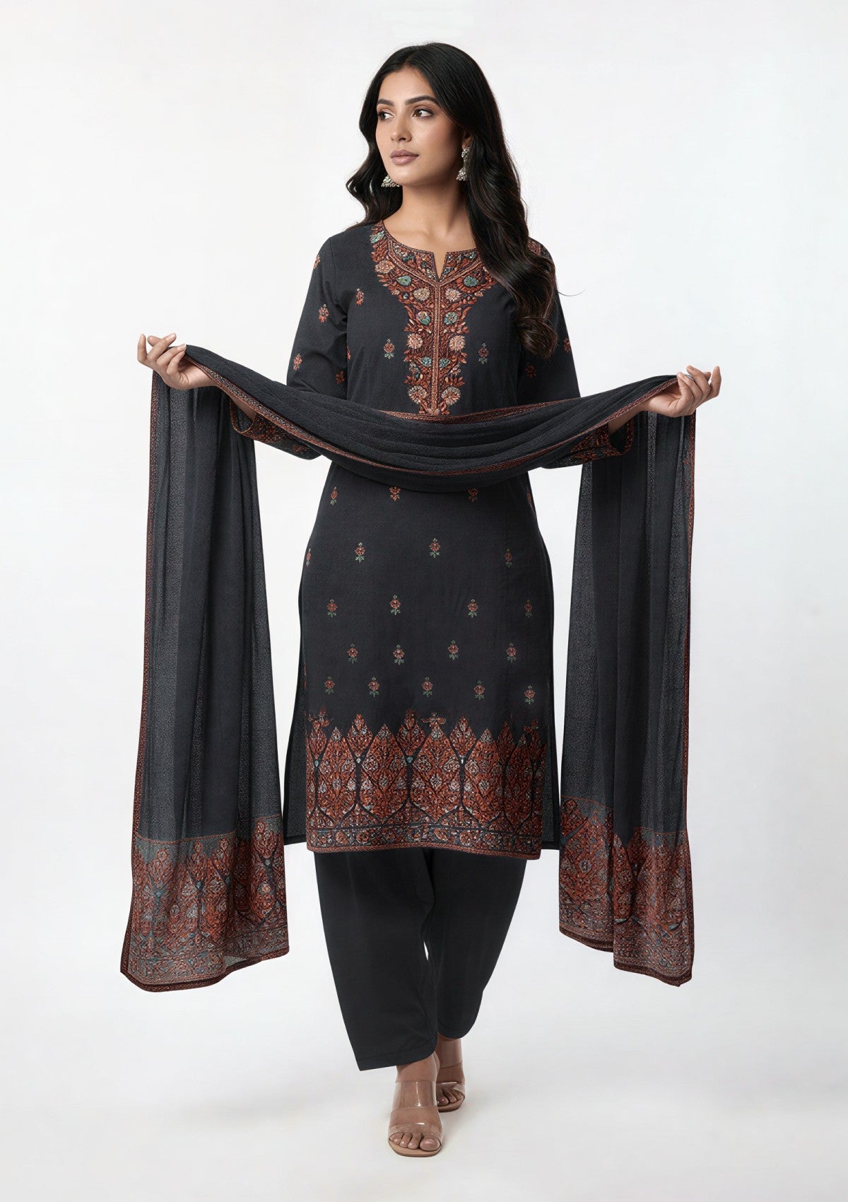 Winter - Riwaj - Pashmina Suit - Kaani Jamawar - Premium 25 - D#44 - Black