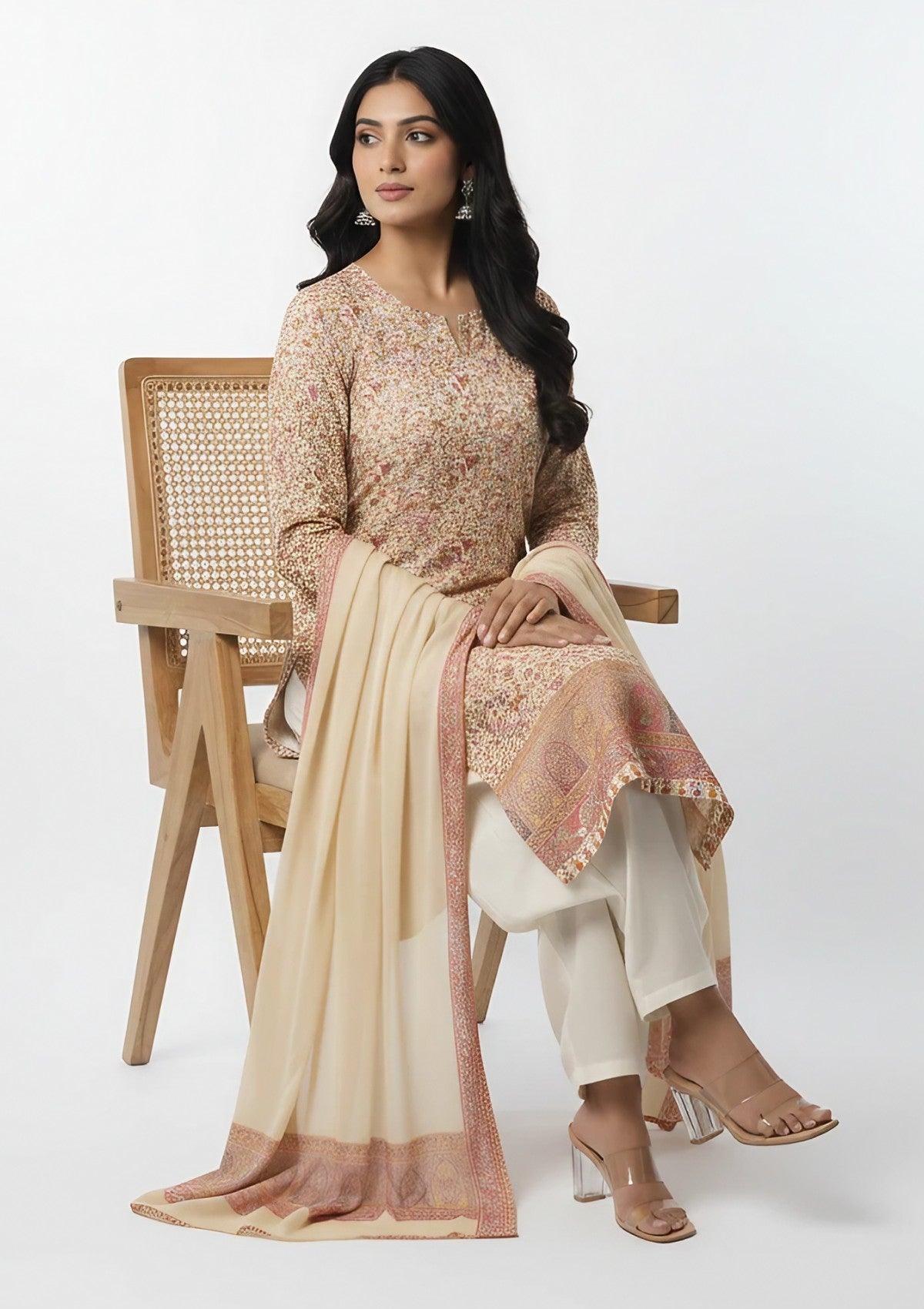 Winter - Riwaj - Pashmina Suit - Kaani Jamawar - Premium 25 - D#48 - L Golden