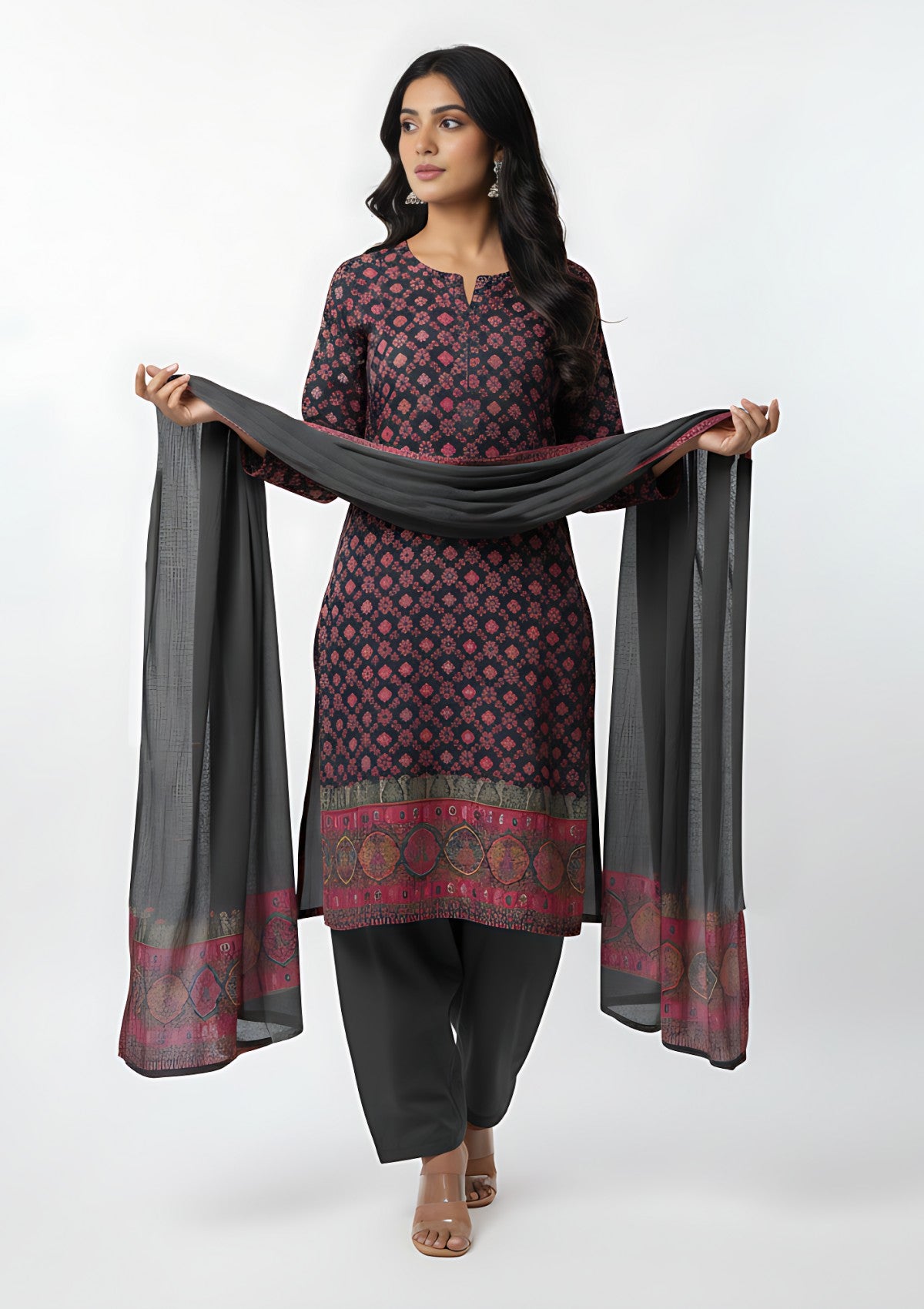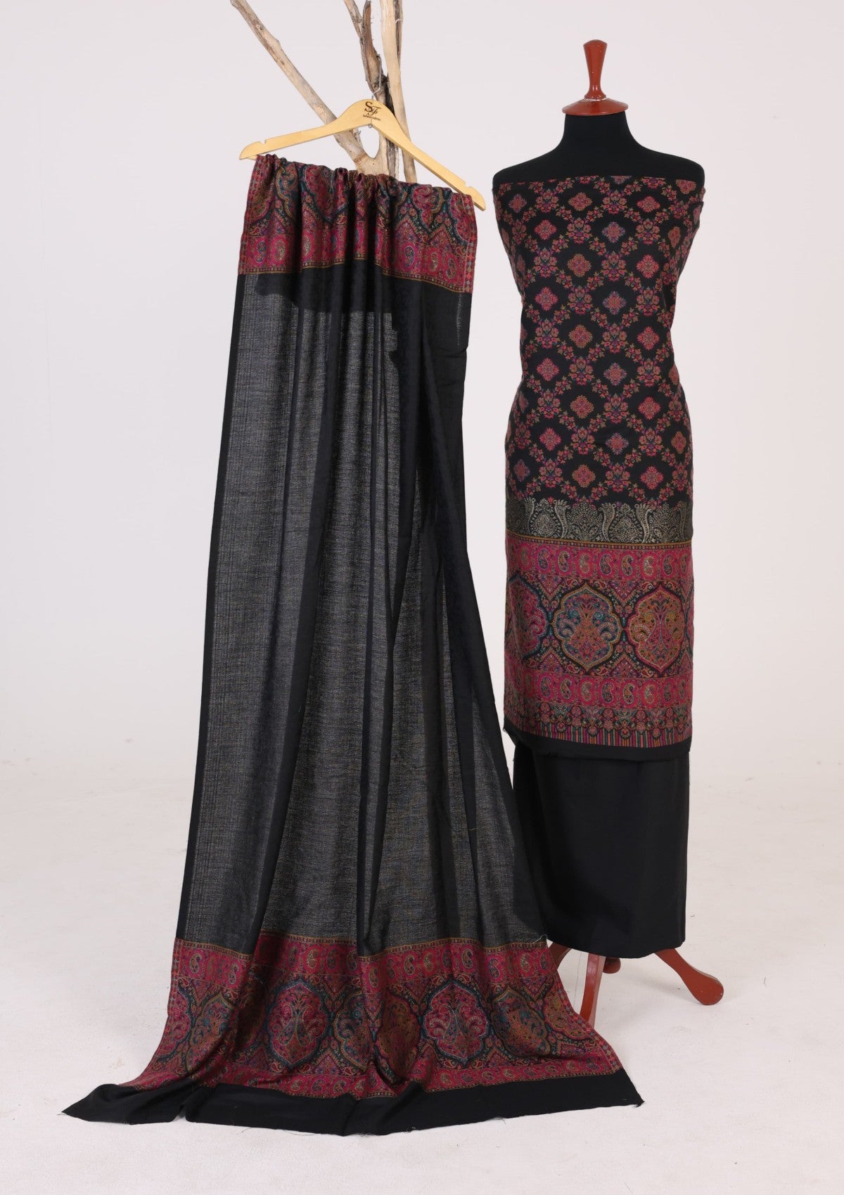 Winter - Riwaj - Pashmina Suit - Kaani Jamawar - Premium 25 - D#49 - Black