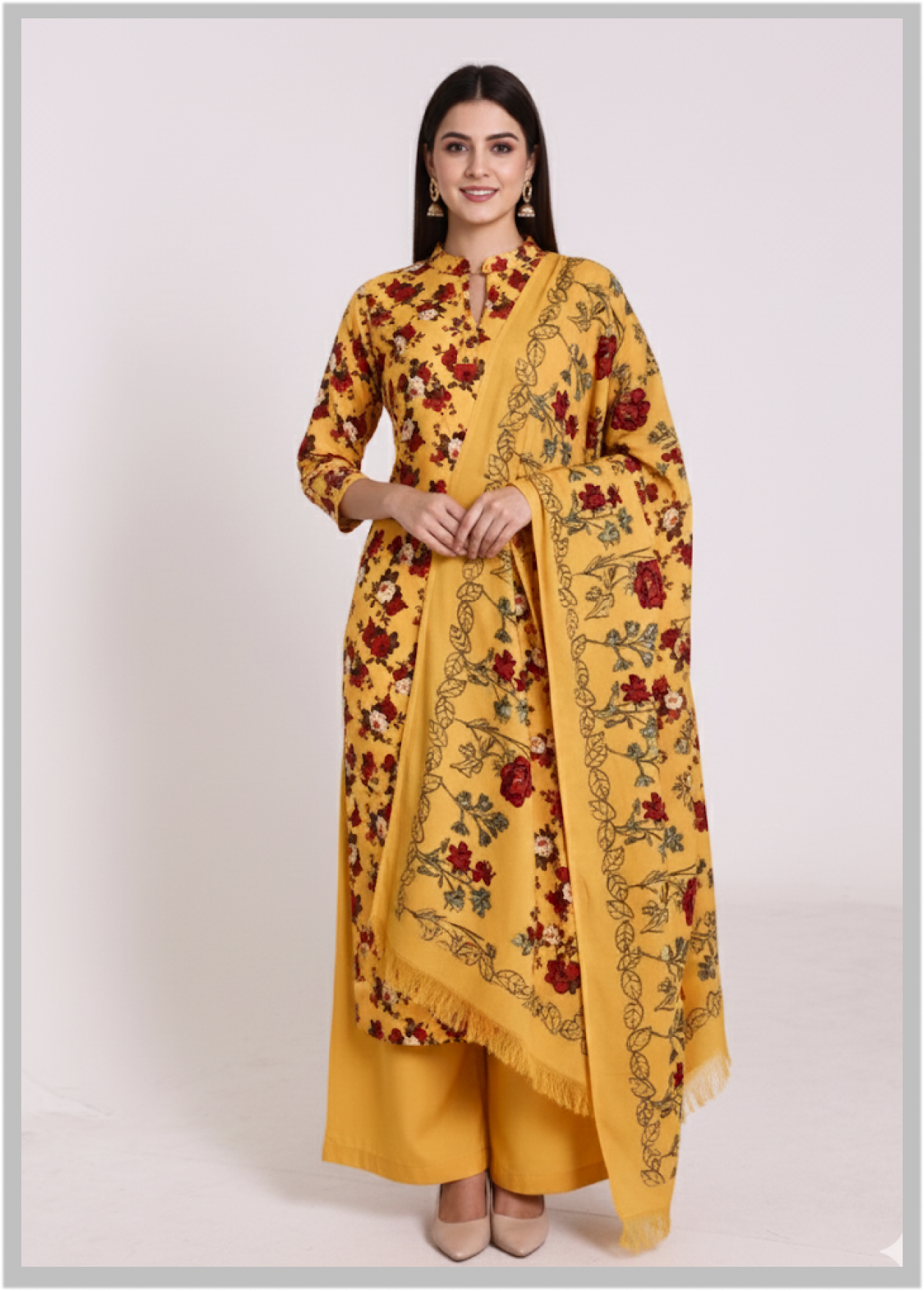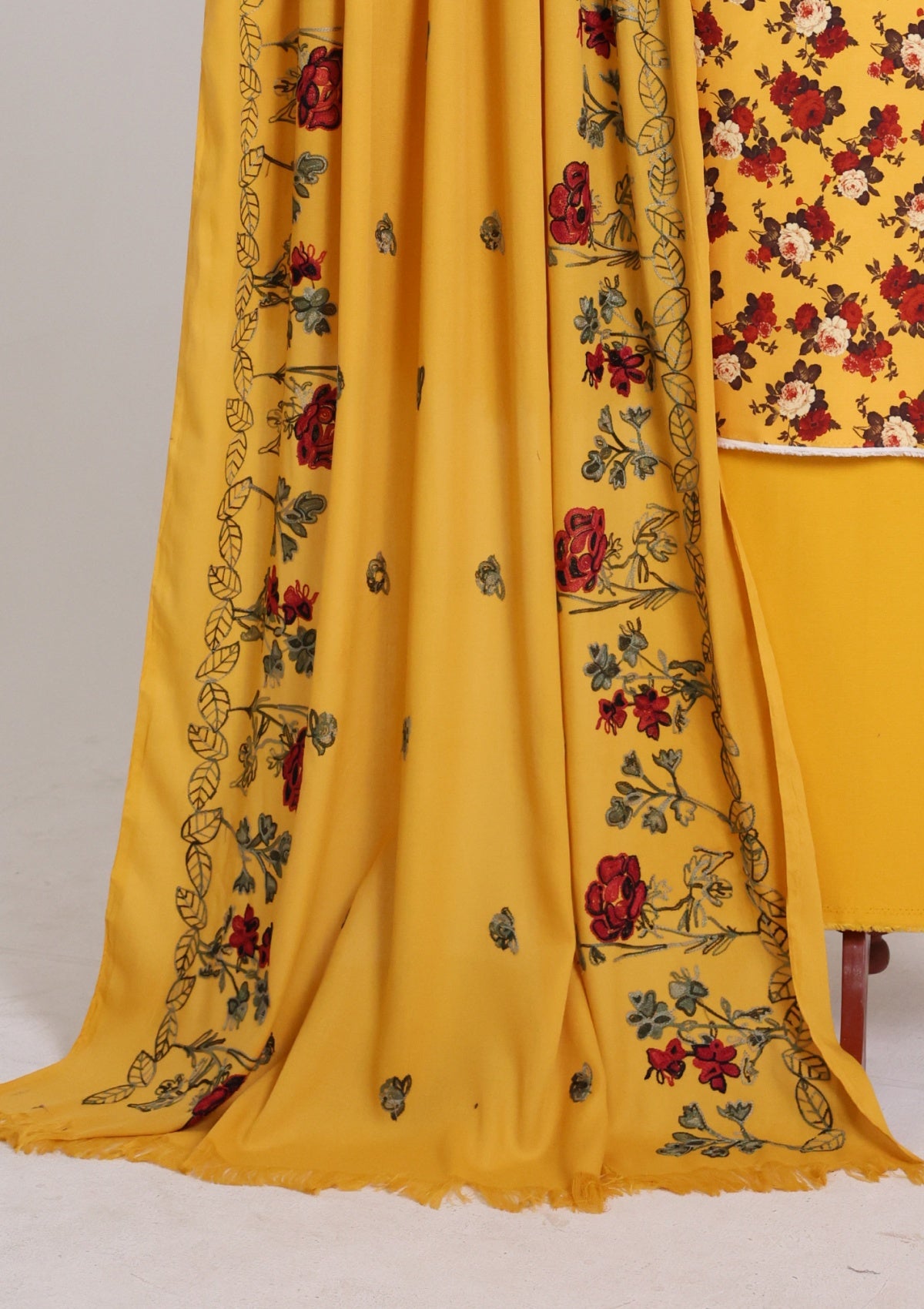 Winter - Riwaj - Printed Cotray Suit - Wool Shawl - D#14 - Yellow