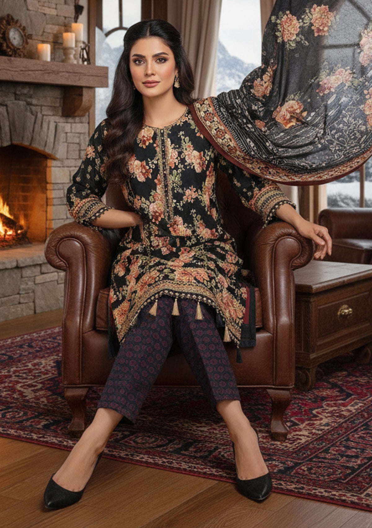 Winter - Riwaj - Printed Marina - 3 Pcs - Wool Shawl 25 - D#46