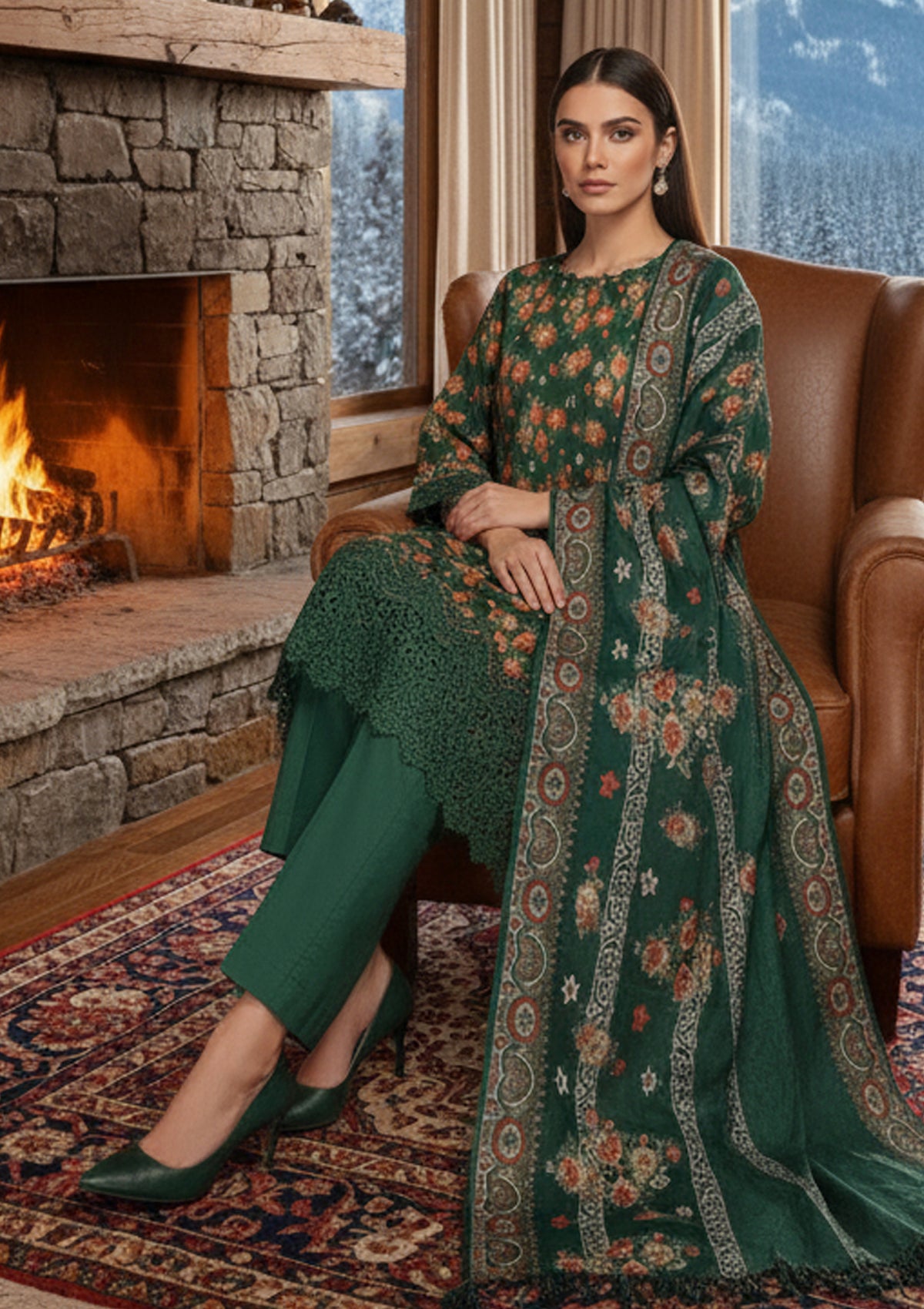 Winter - Riwaj - Printed Marina - 3 Pcs - Wool Shawl 25 - D#79