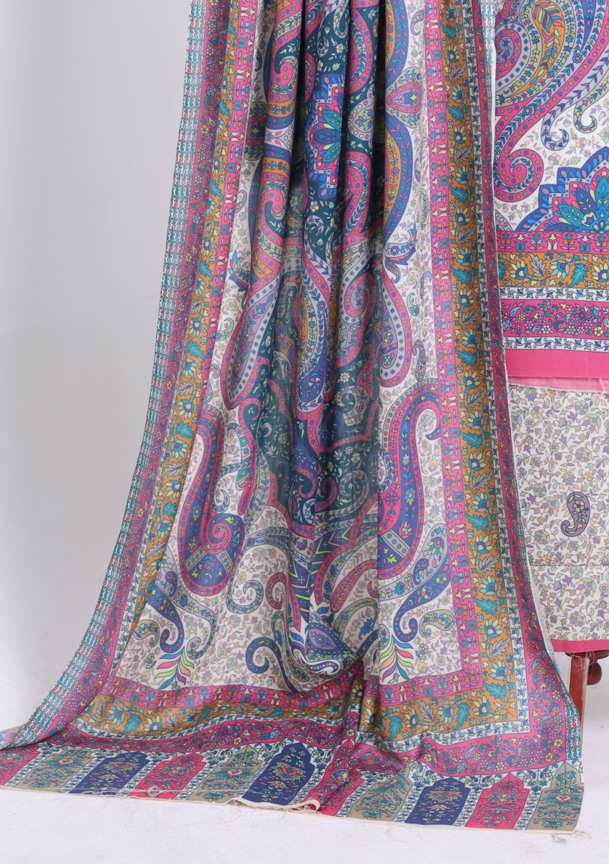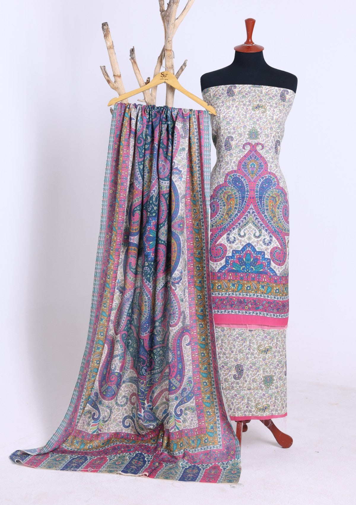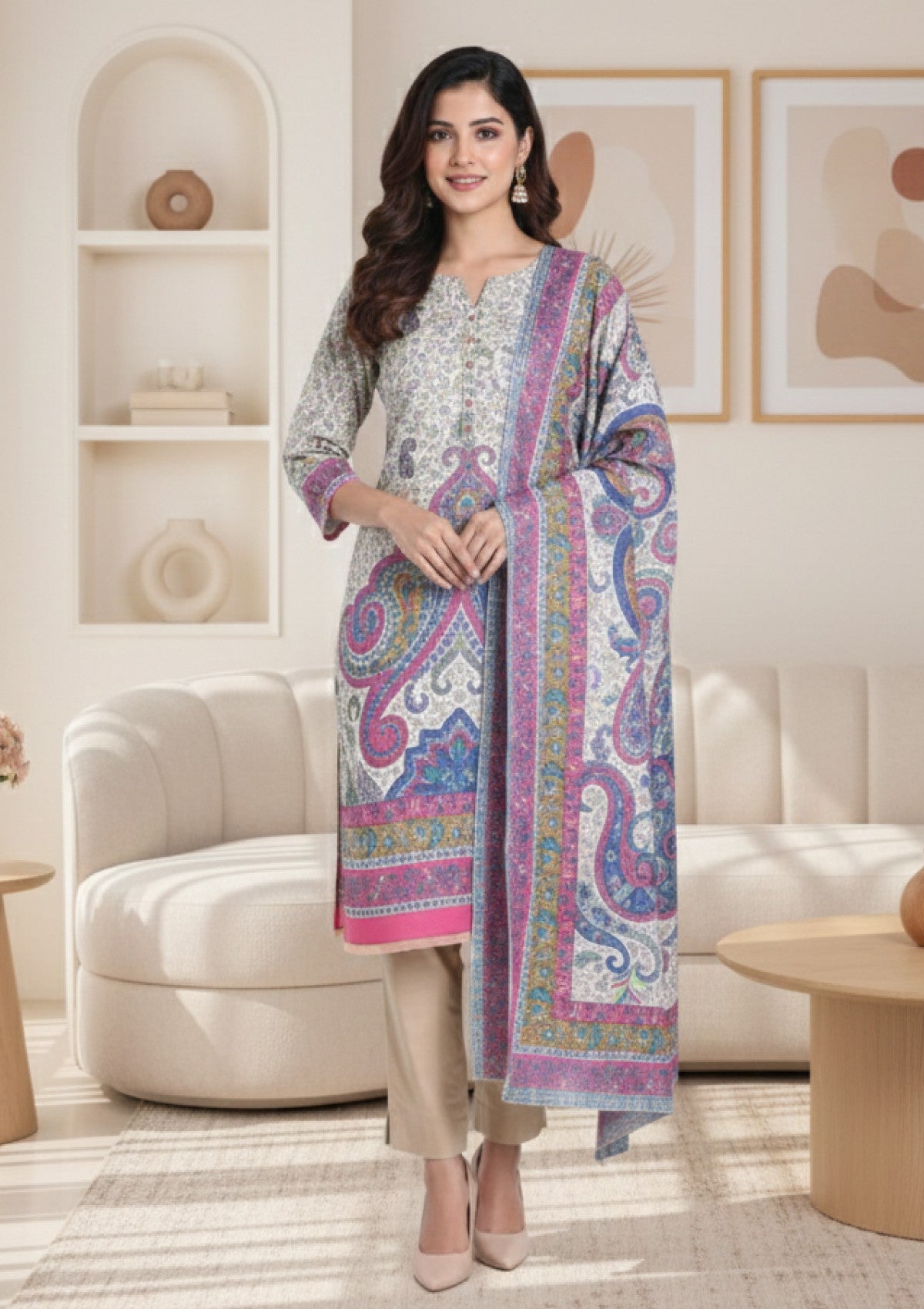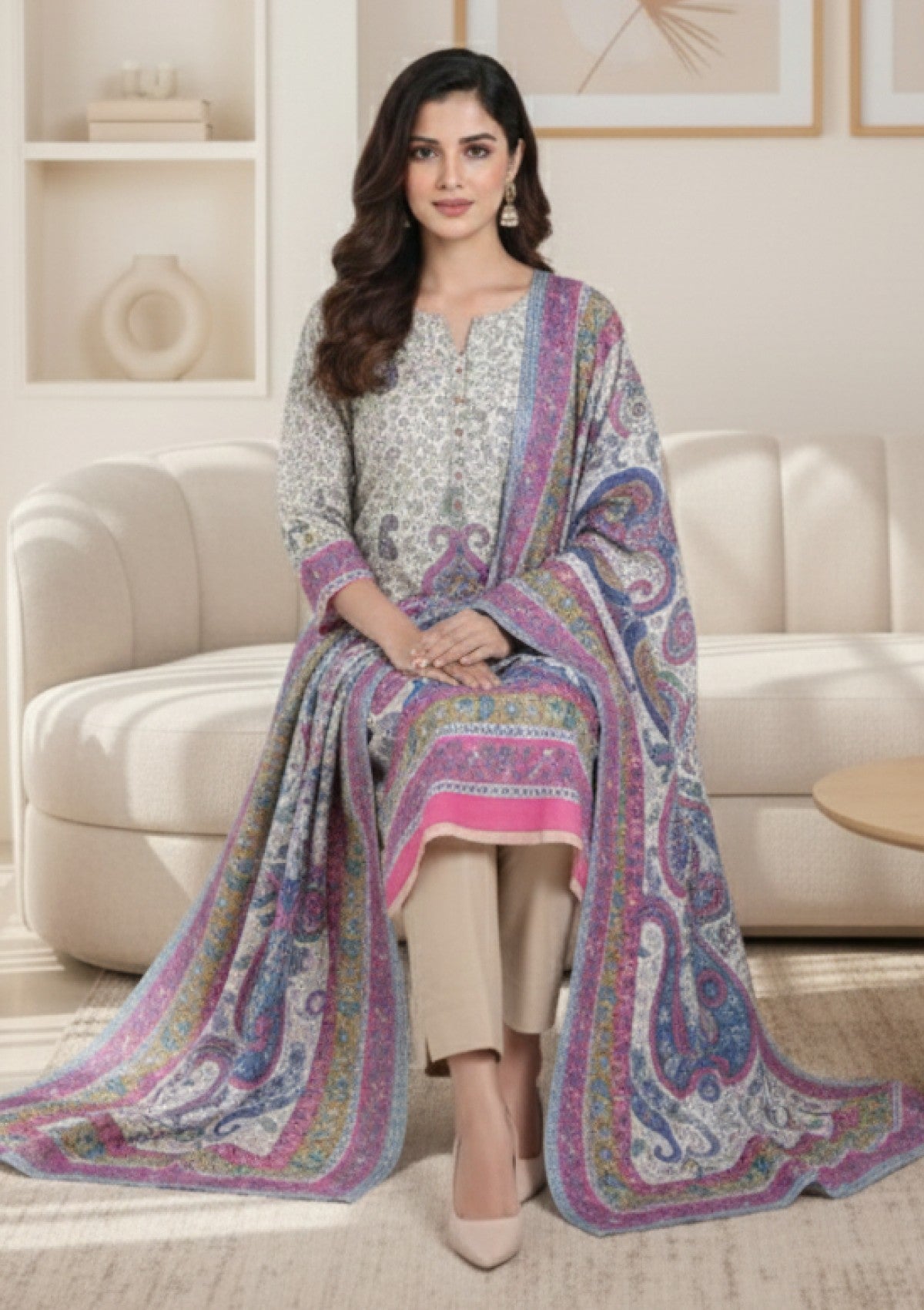 Winter - Riwaj - Printed Pashmina - 3 Pcs Suit - D#01 - P White