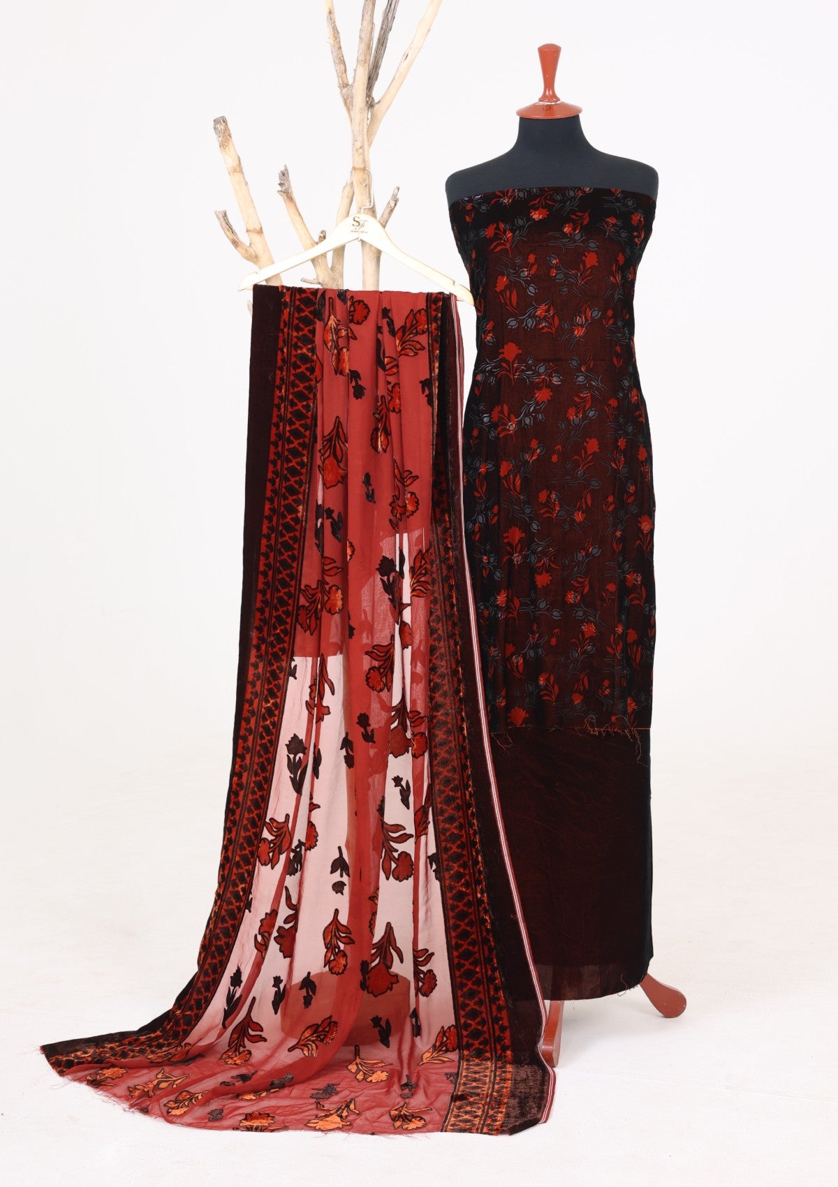 Winter - Riwaj - Velvet Suit - Printed Edit - D#08 - Orange