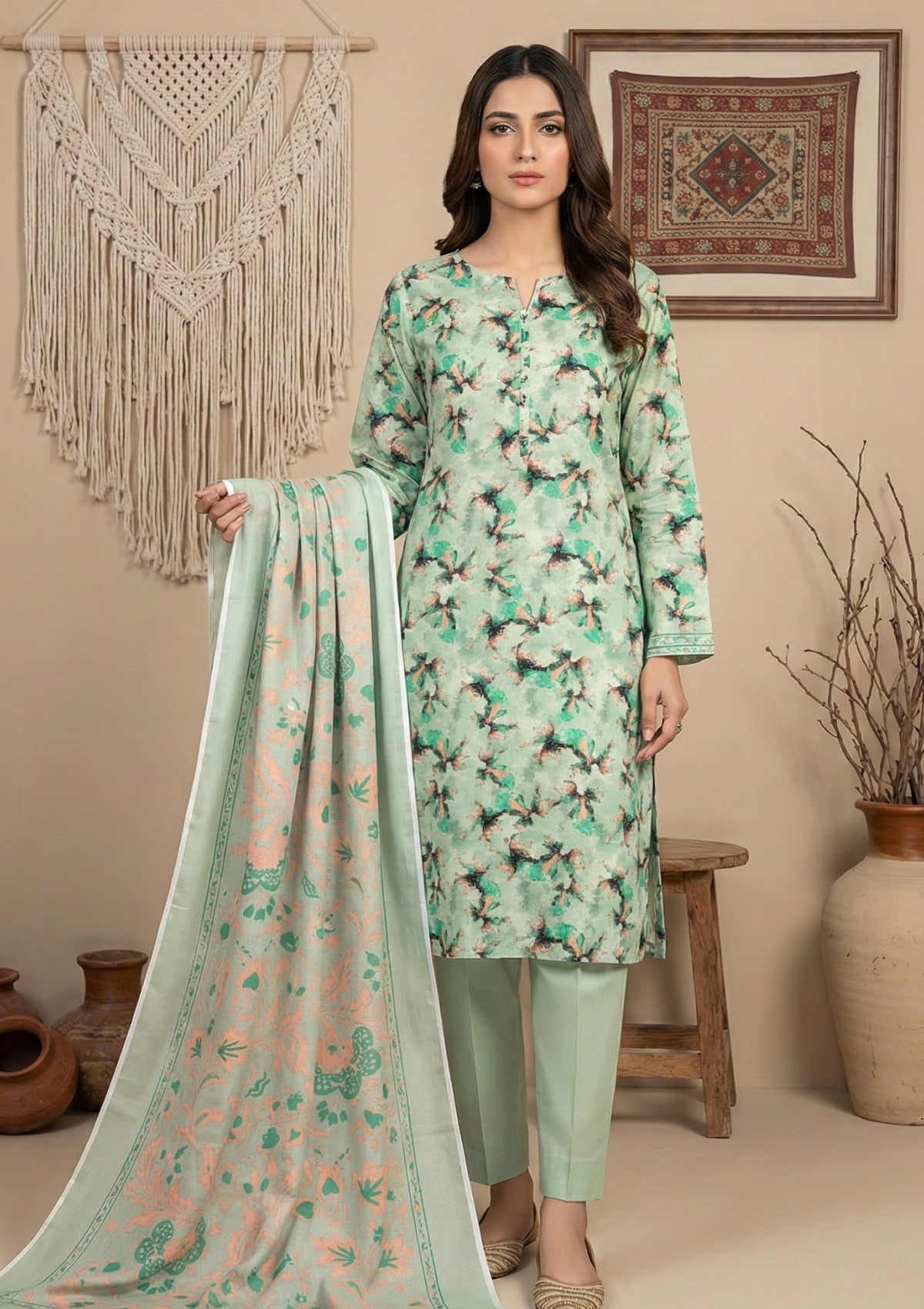 Winter - Rubaaiyat - D Prints - Marina 26 - Wool Shawl - RPM#06 - Green