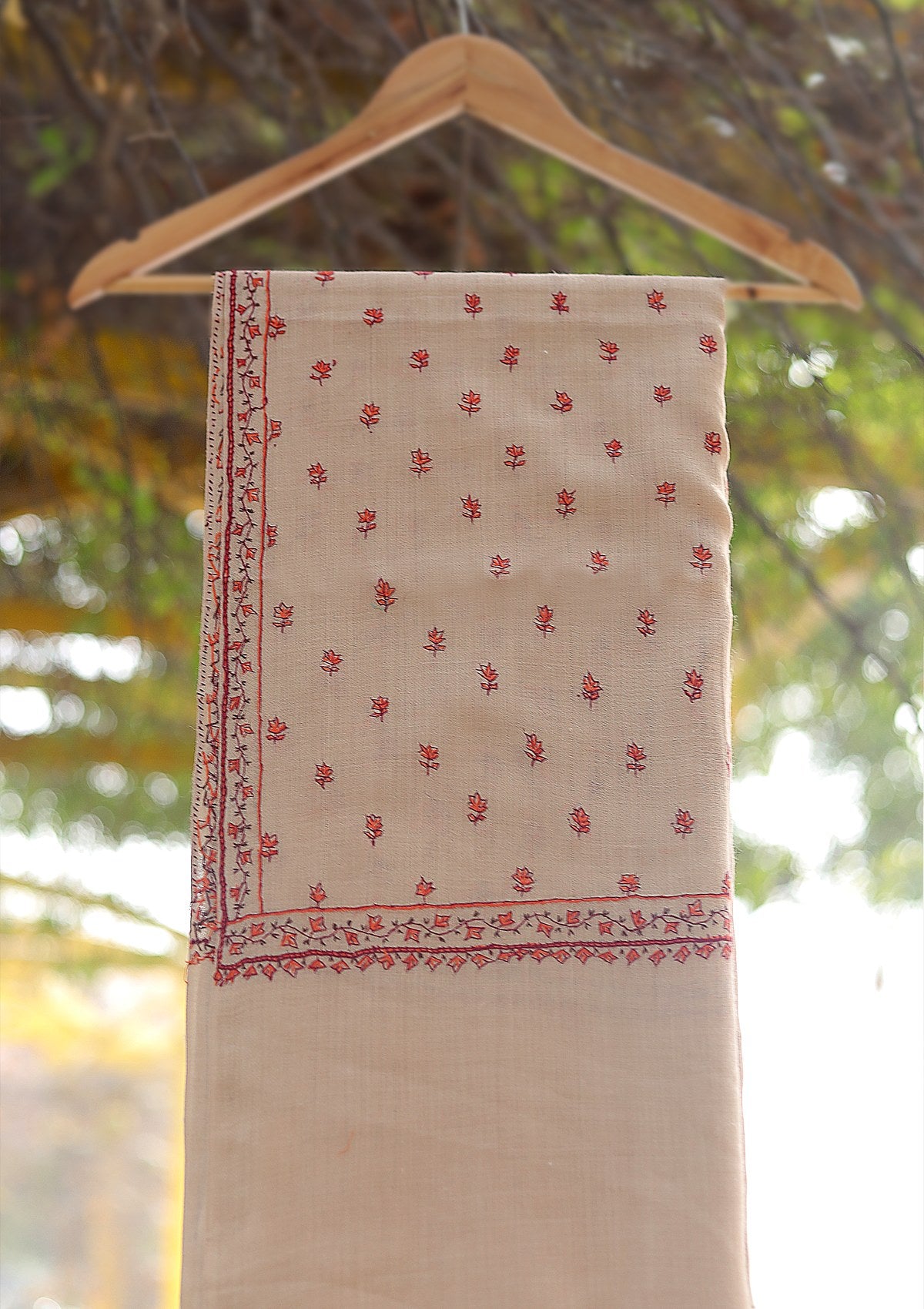 Wool Needle Work Shawl D - 70D - L BEIGE